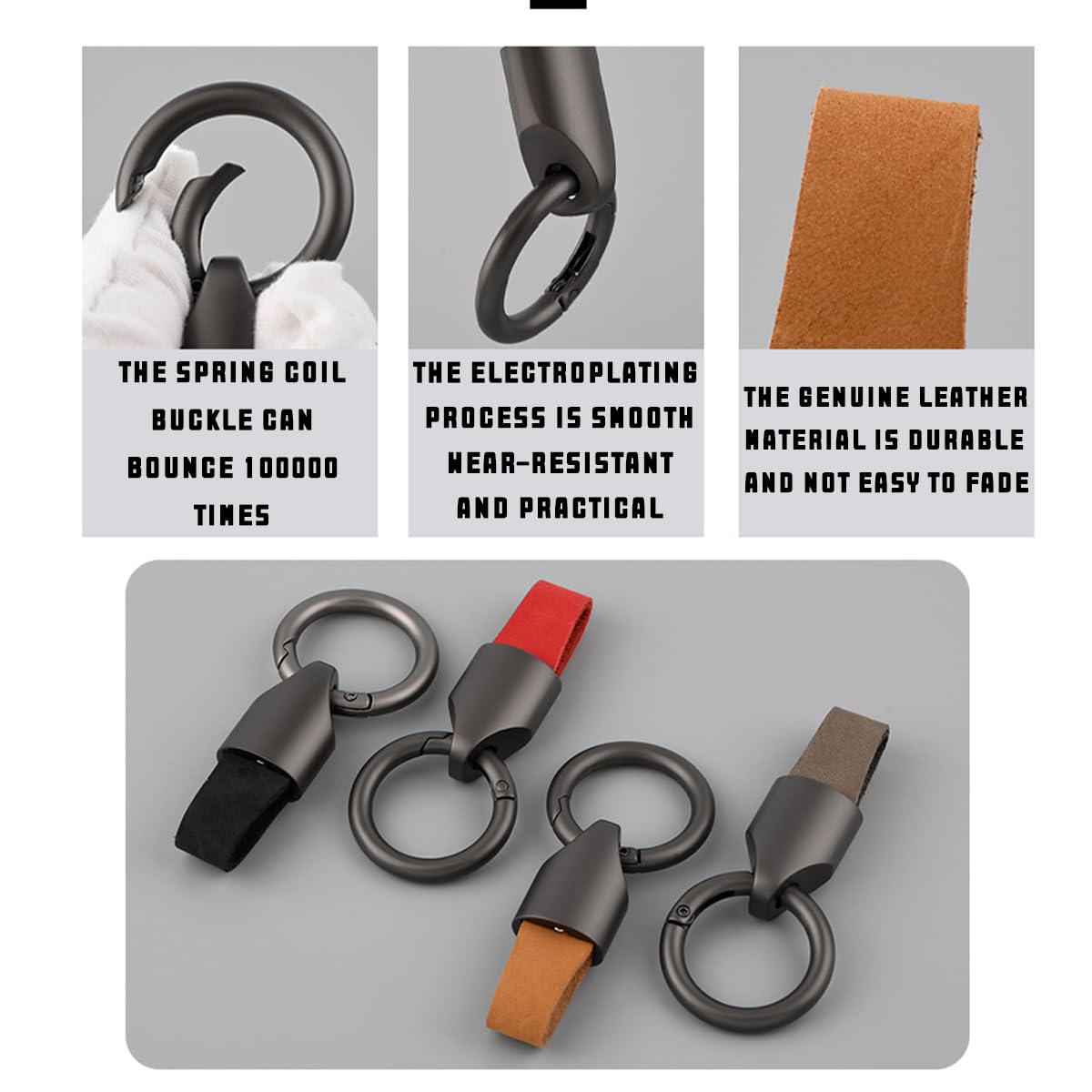 Why You Need Our Car Key Chain Ring Clip? -Durable: Made Of Matte Zinc Alloy And High Quality Leather Strips, Durable, Not Easy To Break And Fade, Can Be Used For A Long Time. The Spring Ring Buckle Can Be Used 100,000 Times. -Sturdy: Made Of Precision Craftsmanship, Sturdy And Not Easy To Break, Can Be Rotated 360° For Free Rotation. -Convenient: With Removable Design, Easy To Install And Remove For Cleaning. -Multi-Functional: Suitable For Many Occasions, Can Carry A Lot Of Small Odds And Ends To Help You Organize. -Gift: It Can Be Used As A Companion Gift For The People You Care About, So They Can Often Remember You.