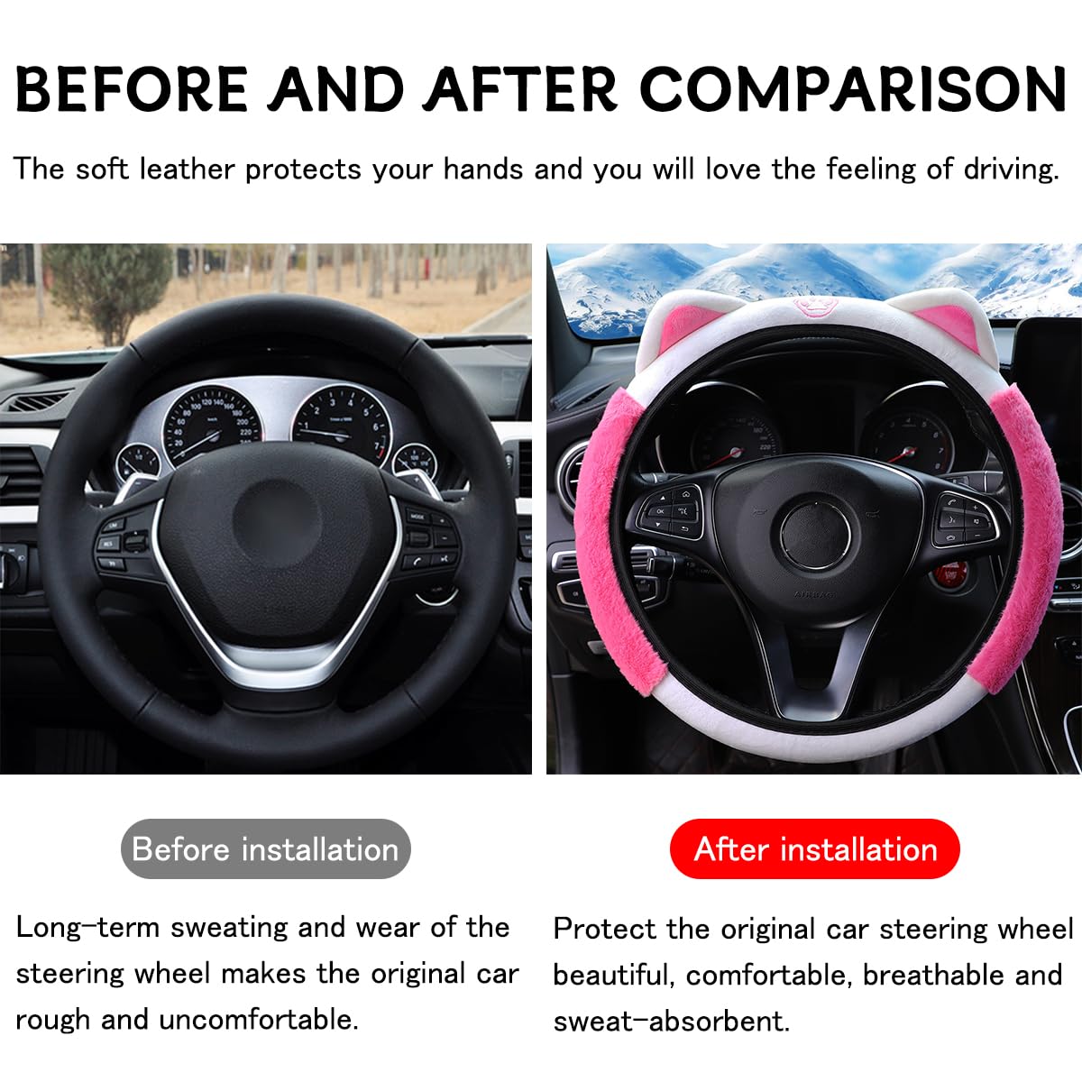 Q: What makes the Bittwee Car Steering Wheel Cover a good gift choice?A: The cute kitty cat ears design and fashionable appearance make this steering wheel cover an excellent gift for cat lovers and anyone looking to add a unique touch to their car interior, appealing to both men and women.
