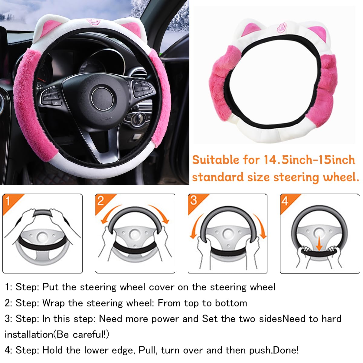 Specifications: Material: Plush Color: Pink, Black Red, Coffee, Blue, Rose Red Diameter: 15 Inches Package Include: 1 X Car Steering Wheel Cover Wide Applications ? Decorate Your Car Interior, More Lovely And Fashionable. ? Protect Your Car Steering Wheel From Scratches, Sunlight And Friction Damage. ? Bring You Warmth In Cold Winter. Fits Most Cars, Suvs, Vans And Trucks With 15 Inch Diameter Steering Wheels. Installation Steps 1. Put The Cover Over The Top Of The Steering Wheel. 2. Press, Then Stretch From Both Sides To Bottom. 3. Secure The Bottom And Make Adjustments. 4. Installation Is Complete.