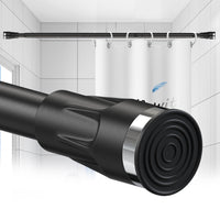 Q: What material is the Black Shower Curtain Rod made of?A: The rod is constructed from sturdy stainless steel with a matte black waterproof coating, providing durability and resistance to moisture, making it ideal for bathroom use.