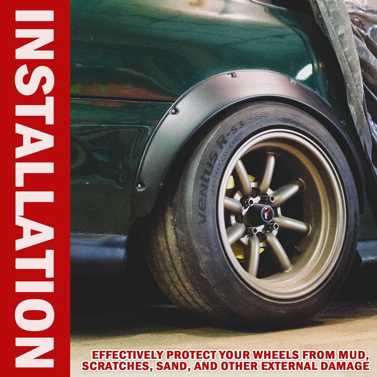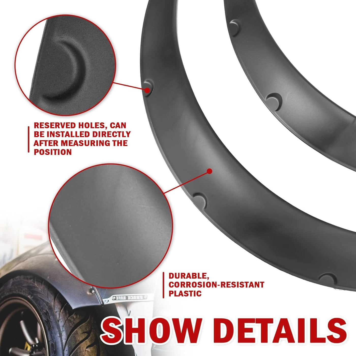 Blackhorse-Racing 4Pcs 780Mm+840Mm Universal Fender Flares Flexible Wide Body Car Kit Wheel Arches 2.25''/2.5'', Pack Of 4