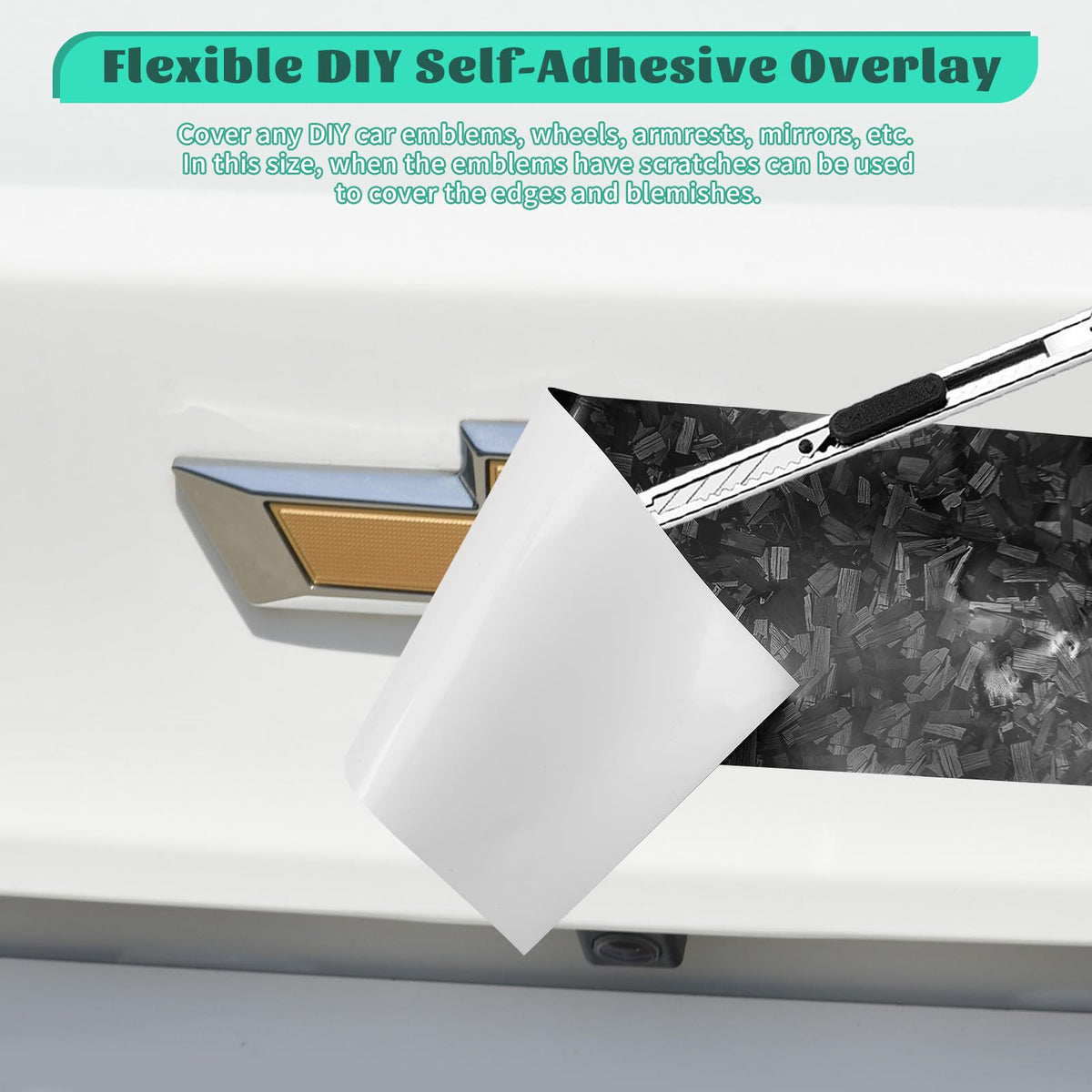 Premium Material Made of sticker and low tack adhesive, the sticker is weather resistant and UV protection that is better for vehicle exterior which may suffer any weather conditions. The adhesive will not damage the surface or coating. The material is stretchy to conform the tightest curves by simply warming the sticker with a heat gun. Smooth Texture Designed with smooth finish, the badge wrap simulates a genuine texture that it is hard to distinguish. The pattern is distinct and high density protecting the vehicle paintwork or coating from scratches. It is a wise choice to change the appearance of your auto badge by overlay with lower cost. Flexible Apply and Remove The car logo wrap comes with tool kit including spatula and cutter that is helpful for installation. It is repositionable and stretchy that you can take some adjustment to fit the emblem until the pattern is aligned exactly as you want. Then use a cutter to expose the outline and a spatula to expel the air. By using adhesive, the badge overlay is removable that won't harm the paintwork. It is easy to be removed from the surface without leaving any stains if you are ready for change another new decal. Dry application method is more easy to handle by yourself. It is recommended to use heat gun or household blow dryer for shaping. Specification: Color: Black forged carbon fiber Dimension: 11.8 x 4 Thickness: 3.4 mils Package Content: 6 sheet of sticker wrap, 1 squeegee, 1 cutter