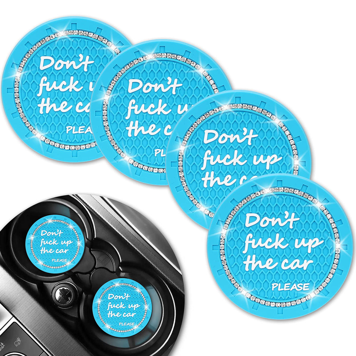 High quality material: The car coasters is made of high-quality rubber soft and bendable and not easily deformed.Super cute car coaster: 2.75 inches diameters soft car cup holder coaster fit 99% car in the market. It's classy looking help to keep your drinks sturdy.Easy to install & easy to clean: It's easy to install and clean by being silicone.They fit perfectly in the cup holder circle you don't need any type of adhesive or anything you just drop them in and they stay put there are absolutely adorable they match with all my other rhinestone accessories in the car. You can remove them at anytime, if you don’t want to use it.Best gift: This is not only a nice little touch up to our vehicle,but also the best gift for family and friends. It can add a warm atmosphere to their car and warm up your feelings.Universal Compatibly: Widely used for Ford, Buick, Mazda CX-7, CX-5,Nissan Honda Civic sedan, Toyota and most cars.