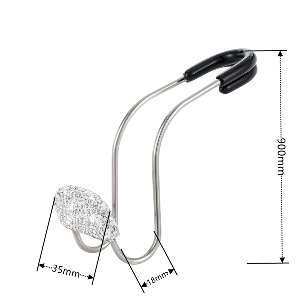 Features: Multiple Uses: Possible Items Which Can Be Hang Include Bags, Purses, Backpacks, Groceries, Coats, Hats, Trash Bags, Bike Helmets, And More. High-Quality Material: Stainless Steel+Bling Bling Rhinestones Crystal. Durable And Sparkle.Perfect Gift Idea For Women,Girls Who Have A Car. Functions: 1. Keep Your Item From Rolling Around. Keep Bags, Purse, Backpack From Failing Off And Spilling From Bags