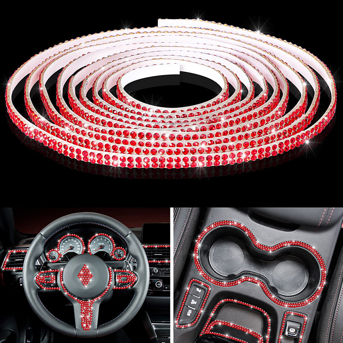 Features: Nice presents: You can give the car accessories as a birthday gift or New Year's gift to your family, friends, colleagues or neighbors to express your care and blessings to them and bring you closer to each other. Nice workmanship: Diamond car accessories for women are lightweight and easy to carry, so you can put them in your backpack for your daily use. When they are not in use, they will not take up much of your storage space. Specifications: Material: chrome plated strips and rhinestones Color: red Size: approx. 5 meters/ 16.4 ft Package includes: 1 Roll of rhinestones car accessories Notes: Manual measurement, please allow slight errors on size. The color may exist a slight difference due to different screen displays.