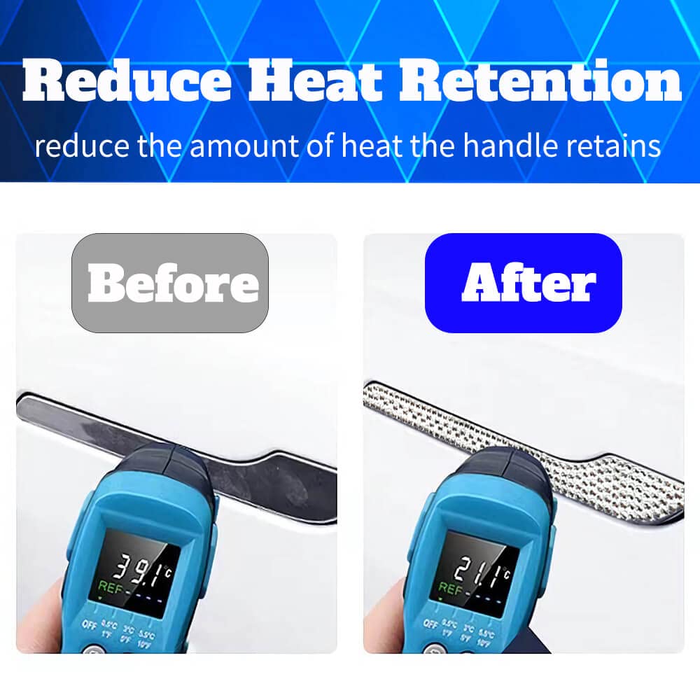 Q: Do these door handle protectors provide any heat resistance?A: Yes, the Yeapop bling door handle protectors help reduce heat retention, making it safer to touch the door handles in hot weather and preventing burns.