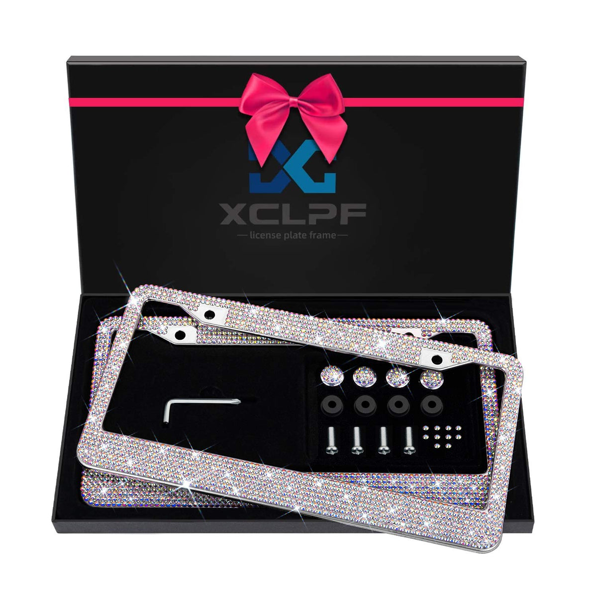 High Quality Glass Crystal ,Non Fading Colors ,Very Shinny Not Like The Others Cheap Plastic Stones .100% Pure Handwork To Glue It ,The Workers Made It One Stone By One Stone ,Not Like Others Make Cheap Sticker By Mould (This Sticker Is Cheap Costs But Easy To Be Dirty And Stones Can Be Moved /Fall Off Easy)We Are Proud To Sell This Good Handwork Products ,Money Back If You Are Not Satisfied With It . We Have Good Gifts Box Package , So It Is A Great Gift For Your Friends Or Family.This License Plate Frame Fits U.S.& Canada Standard Plate 6.3*12.6 Inches.Packing List:1X High-Grade Gift Box2X Bling License Plate Frame8X Washers8X Spacers8X Screws1X Pack Of Spare Small Diamonds1X Round Ring1X Adjustment Tool