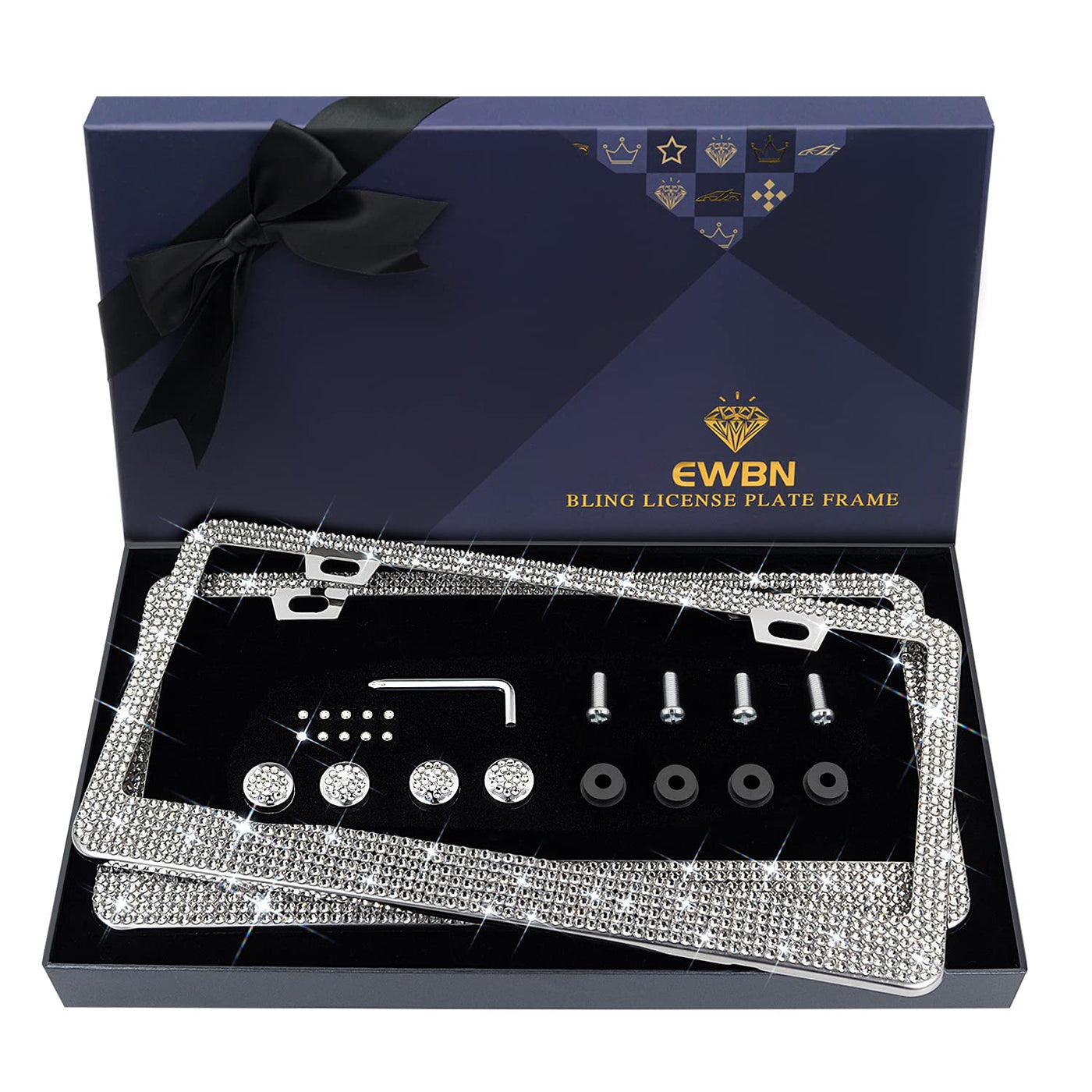 Bling Rhinestone License Plate Frame For Women 2Pc