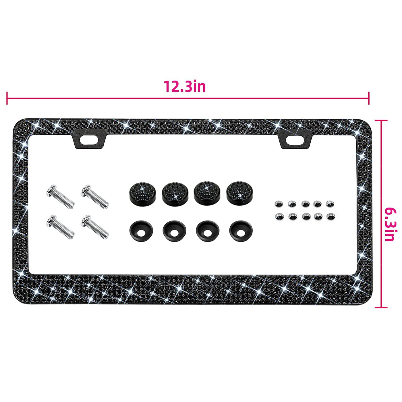 Bling Rhinestone License Plate Frame For Women 2Pc, Sparkly Stainless Steel Frames & Over 1200 Pcs Finest 14 Facets Black Glass