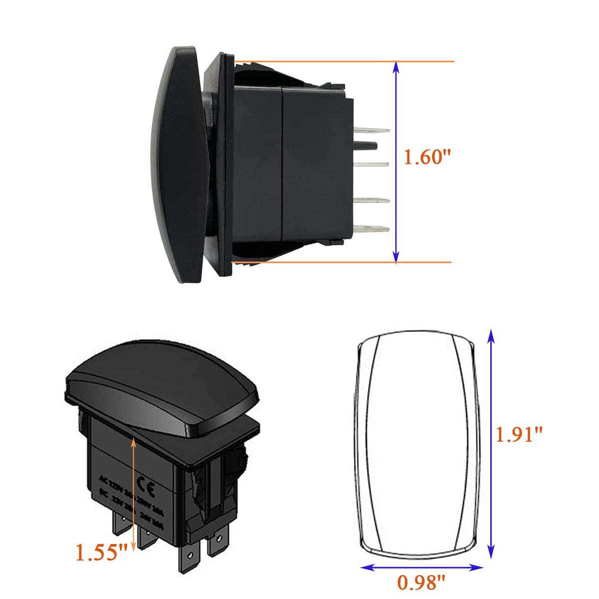 The Turn Signal Rocker Switch Is Dpdt (Double Pole Double Throw) Design. It Has 3 Position And Will Maintain Its Pressed Position. The Right Signal Light Is On When You Press The Switch Up; The Left Signal Light Is On When You Press The Switch Down.The Middle Position Is Off. | Rocker Switch Is Rated At 20Amp/12V Dc And 10Amp/24V Dc; Required Mounting Hole Size: 37.2 Mm X 21.2 Mm(1.46'' X 0.83''); Face Surface Size: 49Mm X 25Mm(1.91'' X 0.98''). | The Cf13Kt Flasher Relay Is Adjustable. Clockwise: Faster, Counterclockwise: Slower. You Can Rotate The Knob To Adjust The Flashing Speed According To The Led Bulb Load. | Suitable For All 12V Car Battery Installation, Such As Cars , Motorcycles , Buses, Boats , Rvs , Trailers, Lorry Etc. Great For Controlling Turn Signal Lights. | The Package Included : 1 X 7 Pin Rocker Switch; 1 X 3 Pin Flasher Relay; 10 X Blue Terminal Connectors.