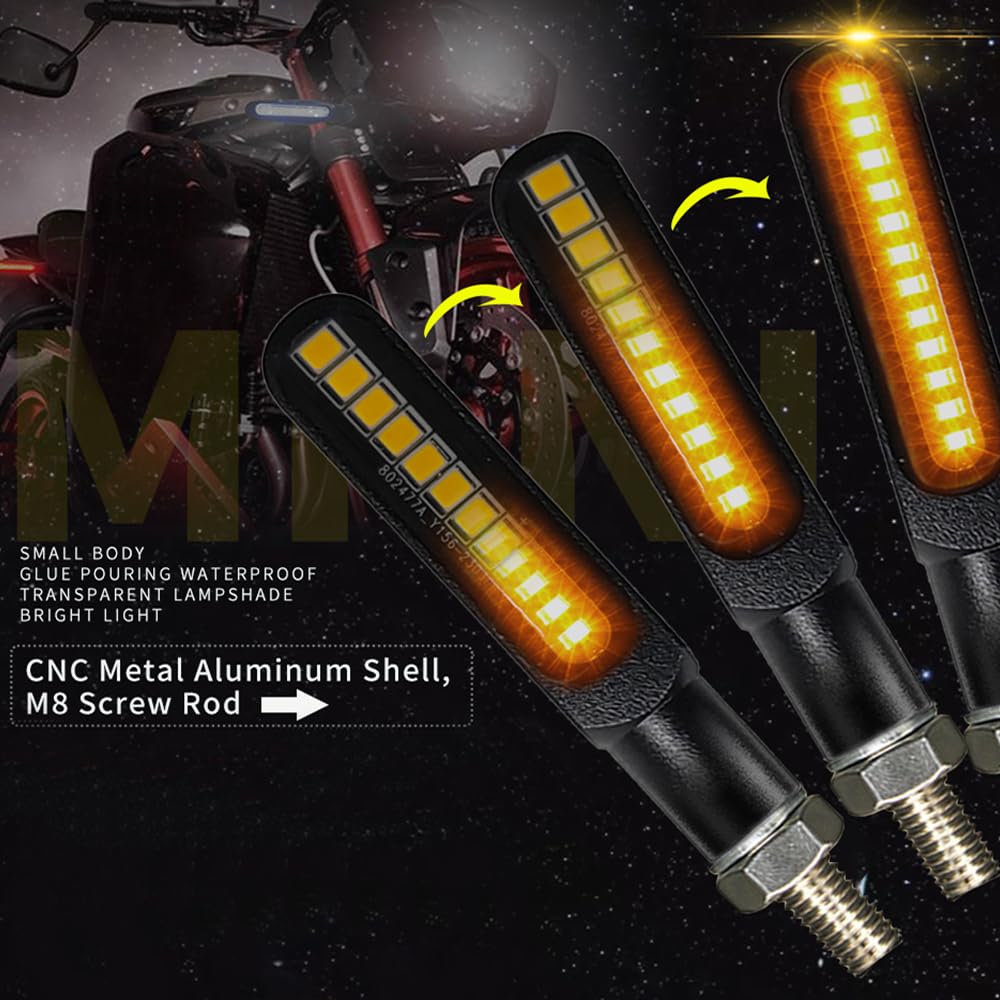 Blyilyb Waterproof Motorcycle Blinkers Indicator Turn Signal Amber Flowing Sequential Universal Lamp (Pack Of 2)