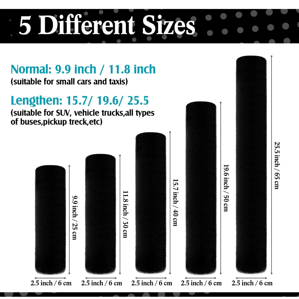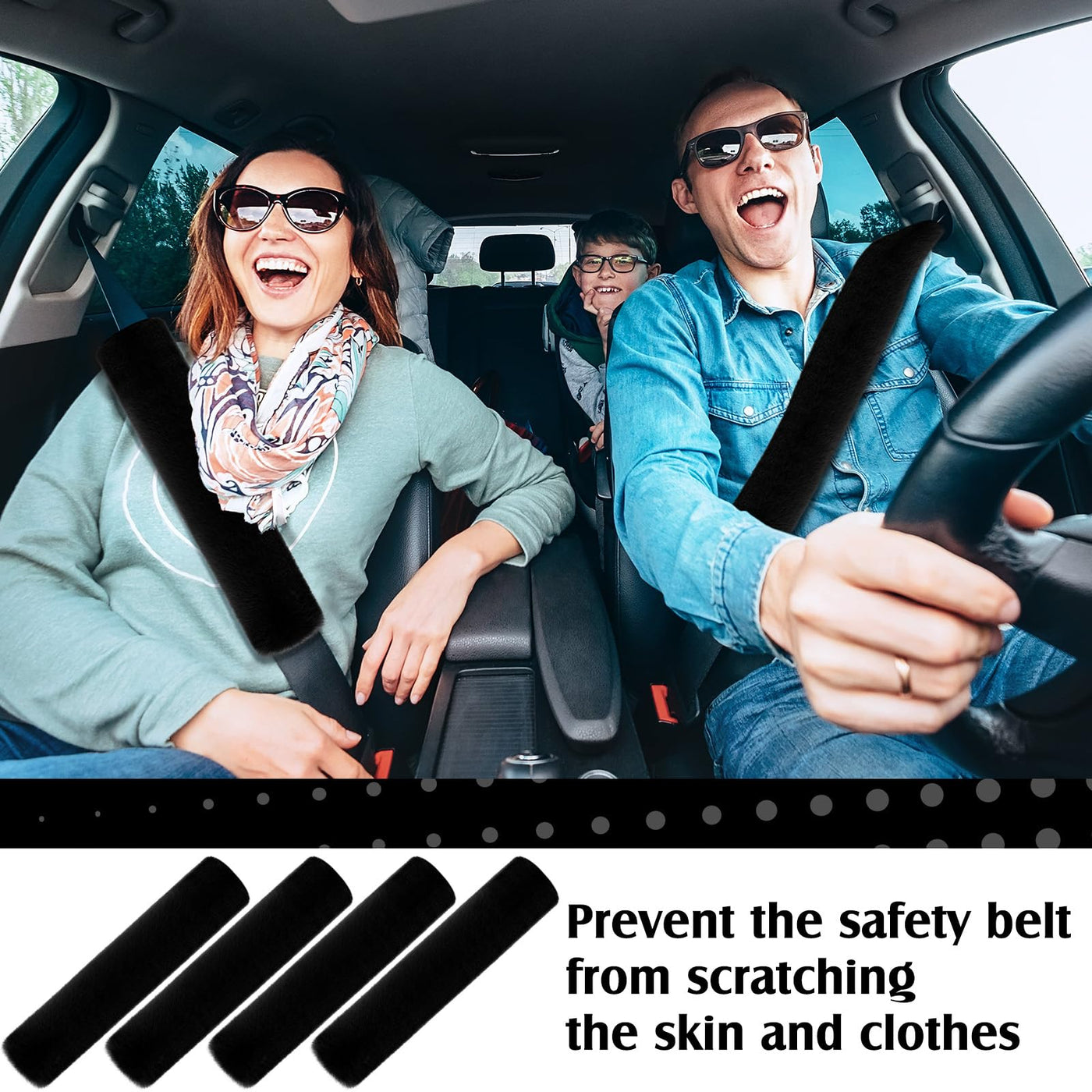 4 Pack faux sheepskin car seat belt pads seatbelt protector soft comfort seat belt shoulder strap covers harness pads protecting neck and shoulderFeatures: Wide application: Seat belt pad with the right amount of padding without being too bulky and too long which is suitable for your seat belts, also can be applied for your backpack, camera or any other types of shoulder bags, relieve your shoulders pressure. Stable material: Smoothness short-staple fabrics faux sheepskin. No fade, no lose fur. Could use last for many years to come. Fashion and practical: You will like them. Encourages the kids to wear their seat belts. Specifications: Multicolor selection: color as picture shown Quantity: 4 packsEach one fold size: 40 cm/ 15.7 inch. (manual measurement, may have some size 's error)Package includes: 4 x Car seat belt padsNote: Please allow a little size error due to manual measurement.