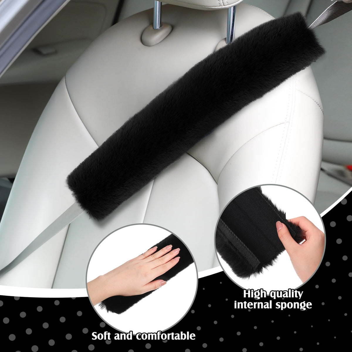 Boao 4 Pack Faux Sheepskin Car Seat Belt Pads Seatbelt Protector Soft Seat Belt Shoulder Strap Cover Comfort Harness Pad(Black,