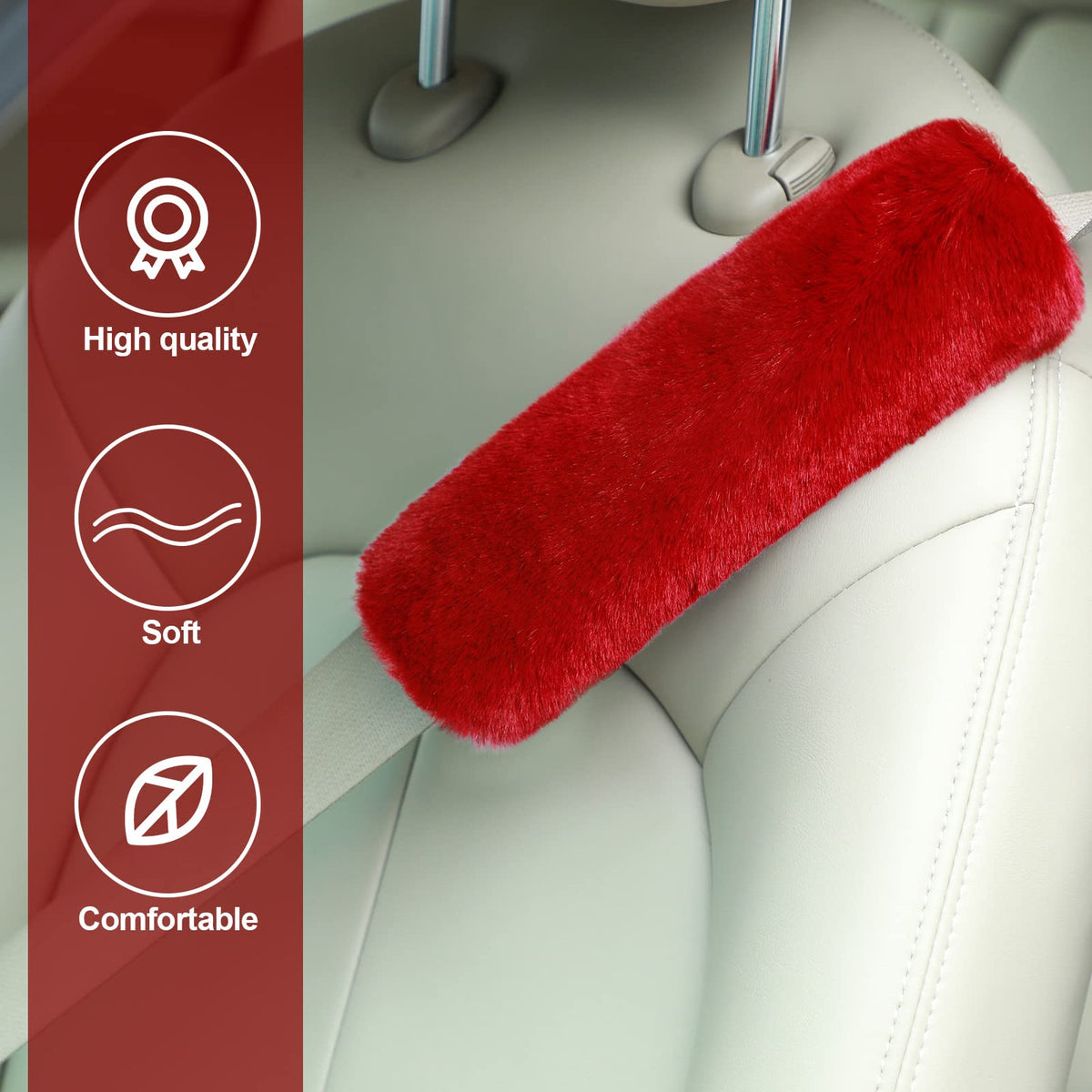 4 Pack faux sheepskin car seat belt pads seatbelt protector soft comfort seat belt shoulder strap covers harness pads protecting neck and shoulder Features: Wide application: Seat belt pad with the right amount of padding without being too bulky and too long which is suitable for your seat belts, also can be applied for your backpack, camera or any other types of shoulder bags, relieve your shoulders pressure. Stable material: Smoothness short-staple fabrics faux sheepskin. No fade, no lose fur. Could use last for many years to come. Fashion and practical: You will like them. Encourages the kids to wear their seat belts. Specifications: Multicolor selection: color as picture shown Quantity: 4 packs Each one fold size: 25 x 6 cm/ 9.9 x 2.4 inch. (manual measurement, may has some size 's error) Package includes: 4 x Car seat belt pads Note: Please allow a little size error due to manual measurement.