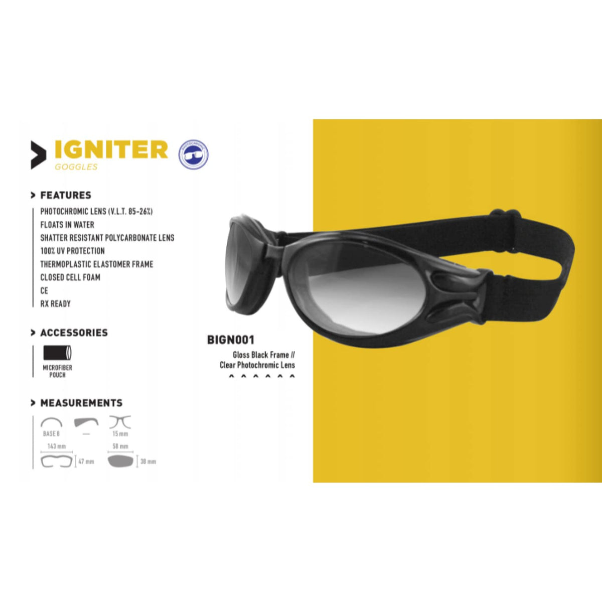 Bobster ® Igniter, Gloss Black Frame, Clear Photochromic Lens