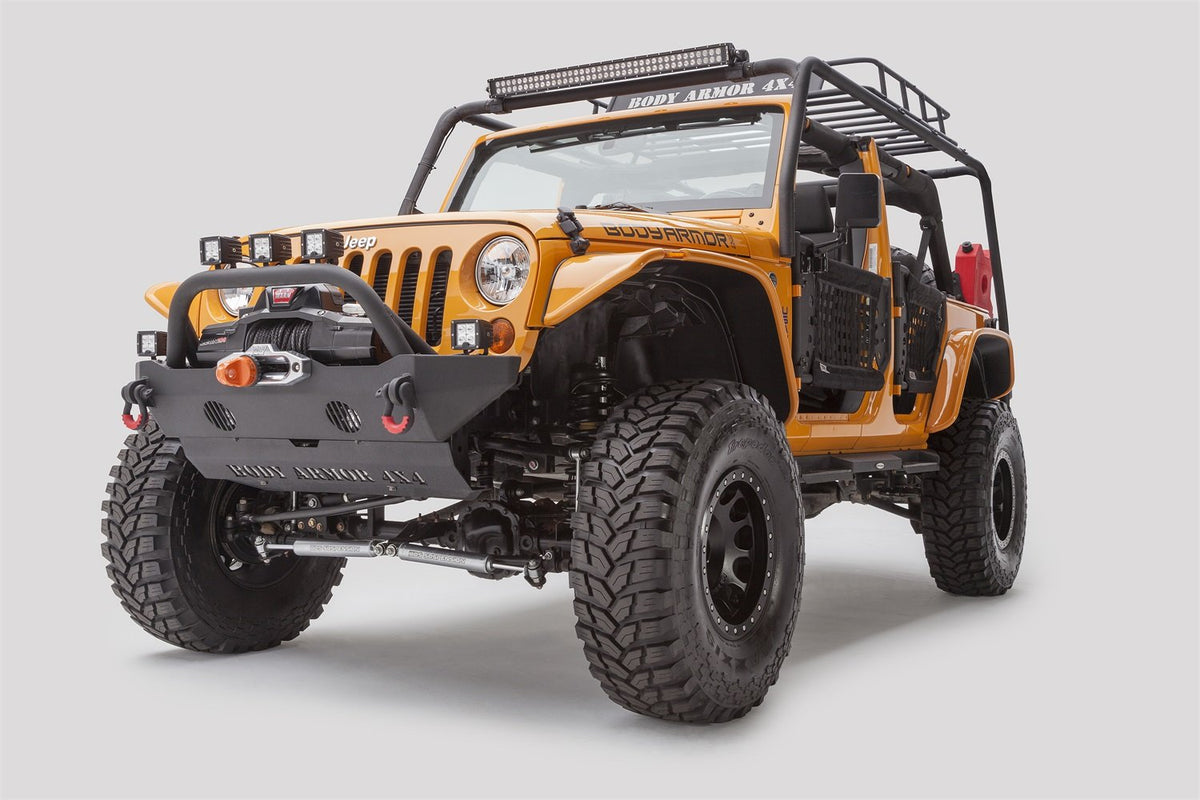 Q: Is the Body Armor 4x4 Mid-Stubby Style Front Winch Bumper compatible with all Jeep JK Wrangler models?A: Yes, the Body Armor 4x4 Mid-Stubby Style Front Winch Bumper is specifically designed for 2007-2014 Jeep JK Wrangler models, ensuring a perfect fit and optimal performance.