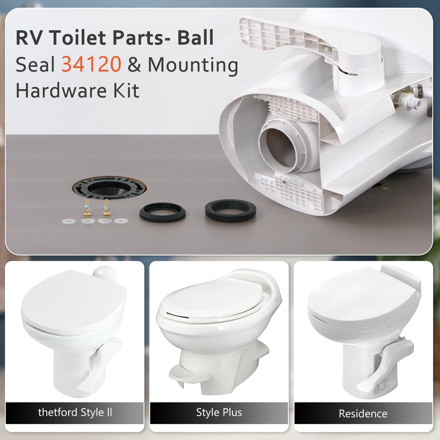 Boeemi Rv Toilet Seal Kit Replacement For Thetfords Toilet Parts- Ball Seal 34120 & Mounting Hardware Kit, Compatible With Aqua
