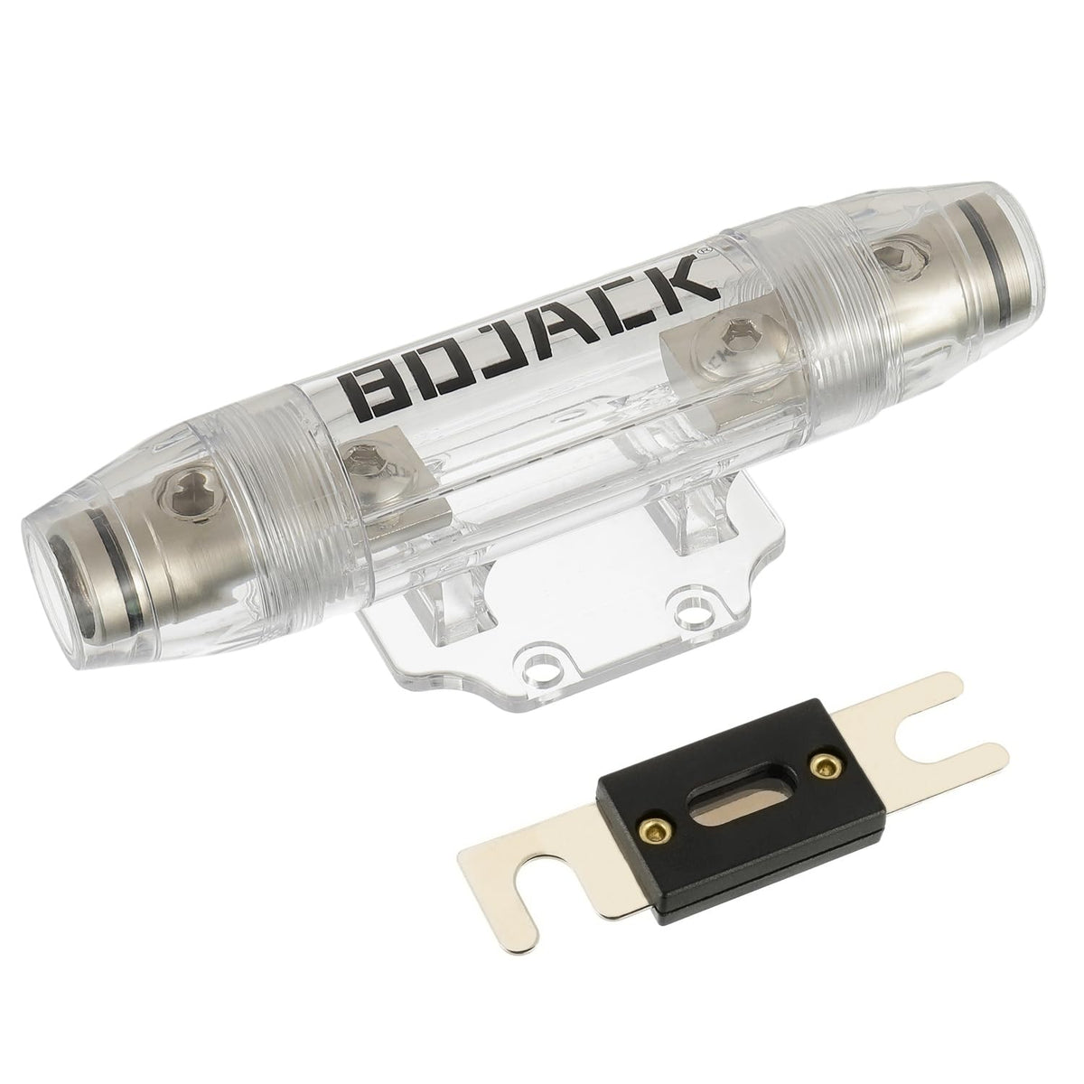 Specifications: 3-Piece Desgin Single ANL In-Line Fuse Holder 120Amp ANL Fuse Included Transparent Protective Cover Satin Nickel Plated Important information: ANL is an in-line fuse holder designed for high current requirements and features a versatile 3-piece design for easy installation. Equipped with a removable cylindrical insert, there is a hole on the side for screws to pass through, which can securely fix the wires. The fuse holder accepts heavy duty 1/0 gauge cables. Allen head compression screws keep cables and fuse secured for optimum electrical conductivity. The fuse holder is satin nickel plated with a protective transparent cover. Included in the package: 1*fuse holder 1*120 Amp Blade Fuse