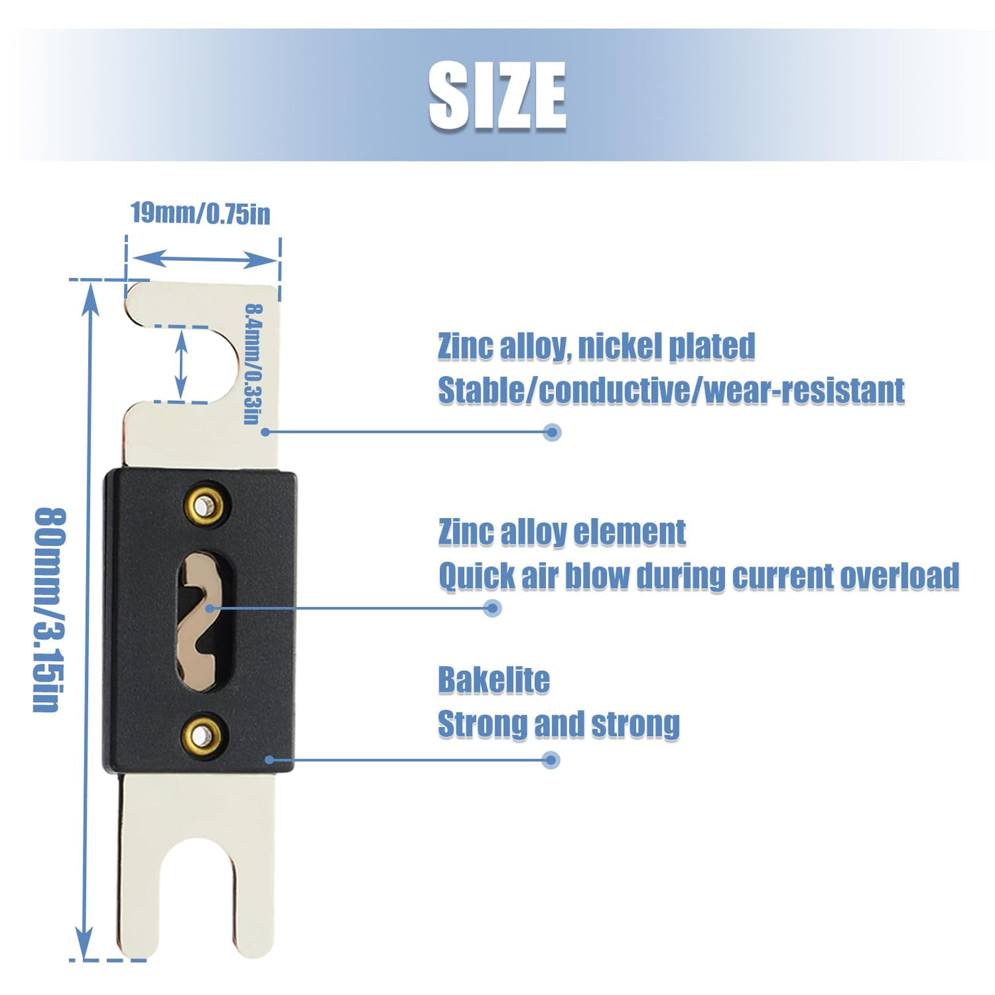 Specifications: 3-Piece Desgin Single ANL In-Line Fuse Holder 125Amp ANL Fuse Included Transparent Protective Cover Satin Nickel Plated Important information: ANL is an in-line fuse holder designed for high current requirements and features a versatile 3-piece design for easy installation. Equipped with a removable cylindrical insert, there is a hole on the side for screws to pass through, which can securely fix the wires. The fuse holder accepts heavy duty 1/0 gauge cables. Allen head compression screws keep cables and fuse secured for optimum electrical conductivity. The fuse holder is satin nickel plated with a protective transparent cover. Included in the package: 1*fuse holder 1*125 Amp Blade Fuse