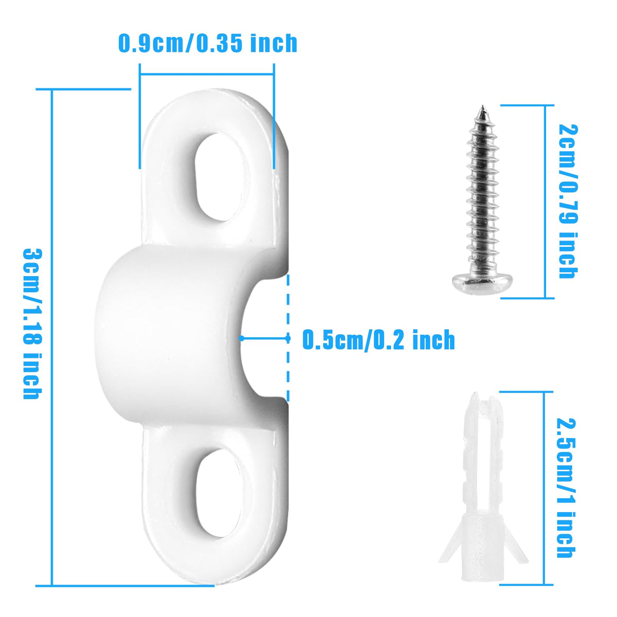 Features 1. Sturdy plastic material, not easy to deformation and not easy to break. 2. Adequate quantity to meet your daily needs. 3. Small and practical, suitable for wall hanging, wall shelves, can also be used to fix the wire, etc.