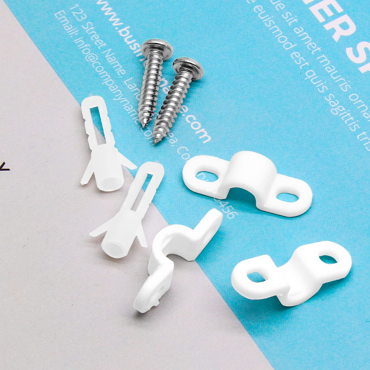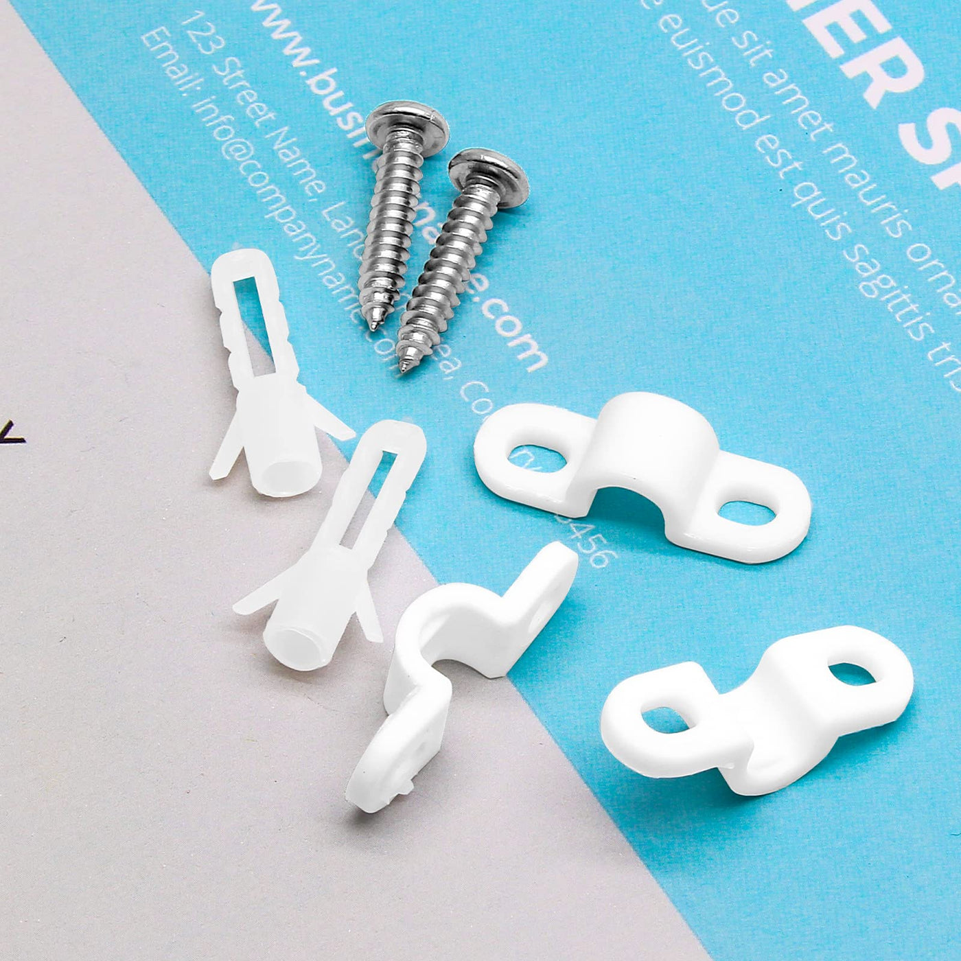 Features 1. Sturdy plastic material, not easy to deformation and not easy to break. 2. Adequate quantity to meet your daily needs. 3. Small and practical, suitable for wall hanging, wall shelves, can also be used to fix the wire, etc.