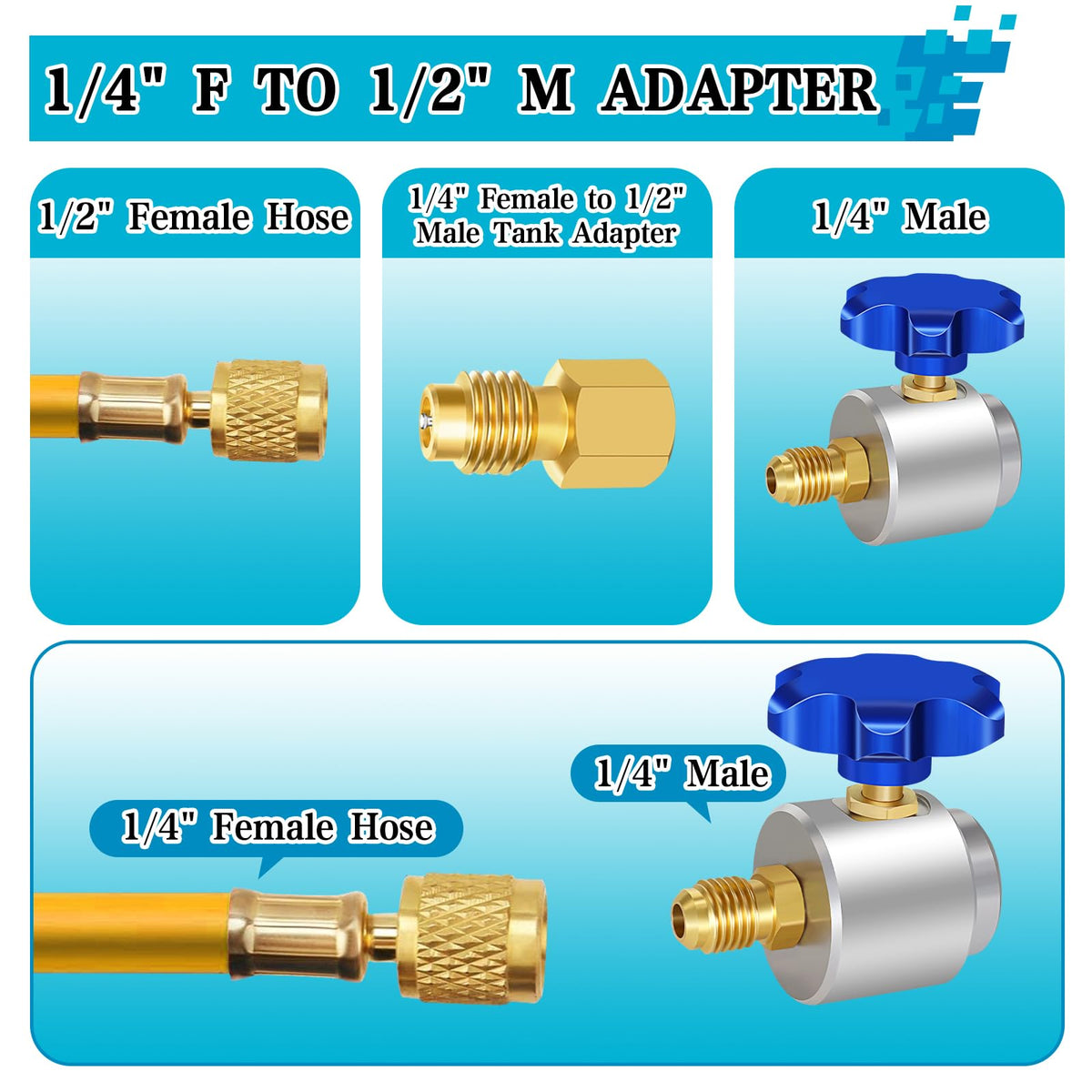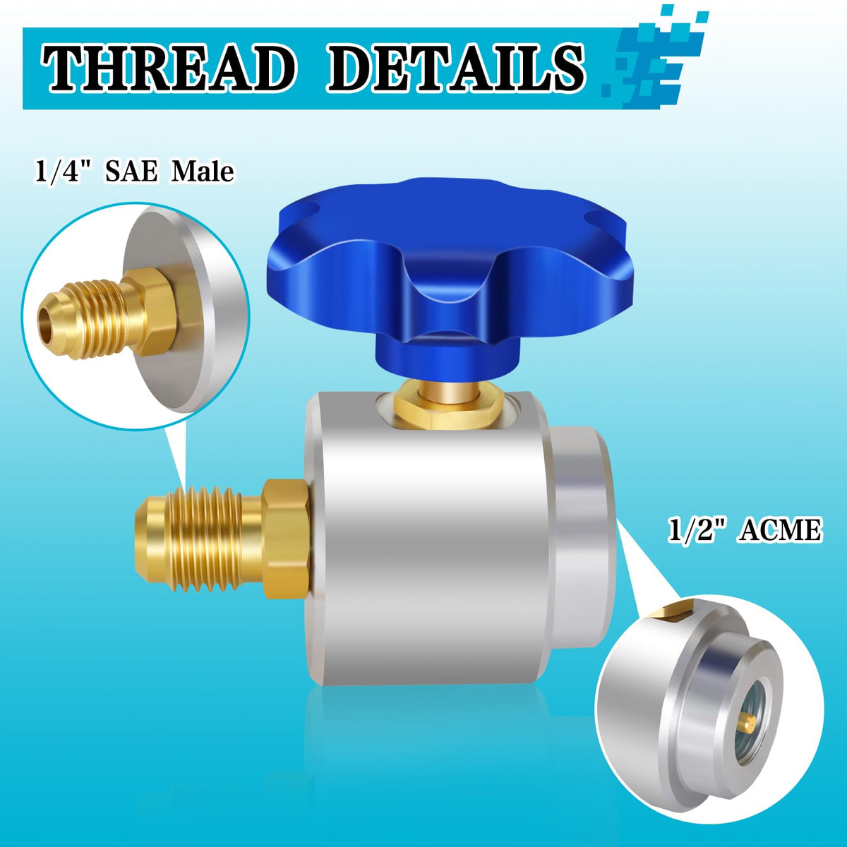 Product Information: Name:Self Sealing R134A Valve Cap Color:Silver Material:Aluminum And Brass Model:Self- Sealing 1/2-16 Acme Female Coarse Thread R134A Can Tap Package:R134A Can Tapper *1R134A Tank Adapter *1 Note:1. If You Are Dissatisfied With Our R134A Self Sealing Can Tap, You Can Contact Us On Amazon,We Will Give You A Satisfactory Solution.2. If You Are Satisfied With Our R134A Refrigerant Dispenser , You Can Also Share This Happy Shopping Experience On Our Amazon Linked.3.Wish You Have A Happy Shopping Experience.