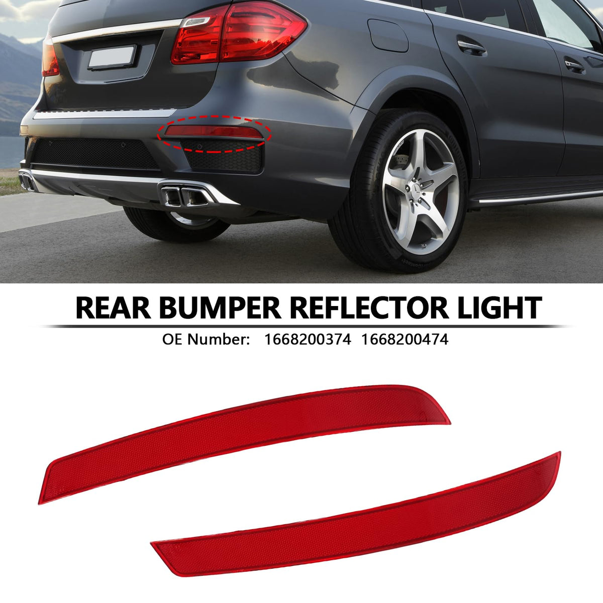 Bomunik Rear Bumper Reflector 2012-2019 For Benz GL320 GL450 GL550 W166 13-16 GL Class Replacement number # 1668200374 (left rea