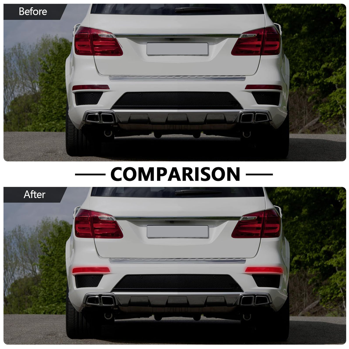 Q: Is this rear bumper reflector compatible with my Benz GL model?A: Yes, the Bomunik Rear Bumper Reflector is designed for various Benz GL models from 2012 to 2019, including GL320, GL450, and GL550. Please confirm your vehicle's model and production year for guaranteed compatibility.