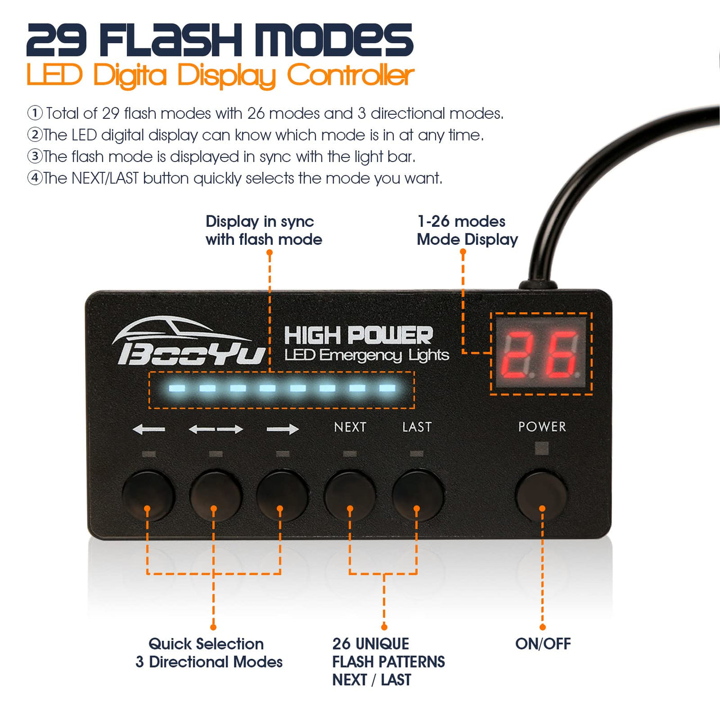 Booyu 2 In 1 Traffic Advisor Light Bar W/Digital Display Controller Windshield Led Emergency Strobe Visor Safety Warning Hazard