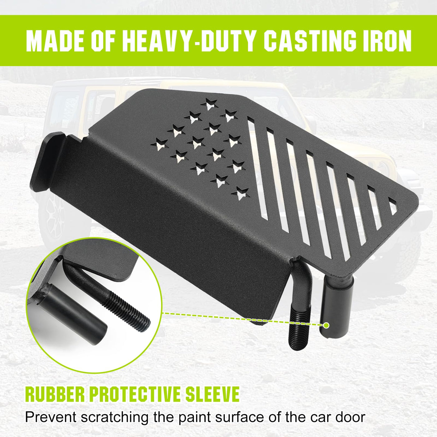 BORDAN Front Foot Pegs Foot Rest Pedals for Jeep Wrangler JK JKU JL JLU JT Gladiator 2007-2025, Exterior Door Hinge Foot Peg Metal Rest Pedals with US Flag, Upgraded 120 Degree Wrangler Foot Pegs