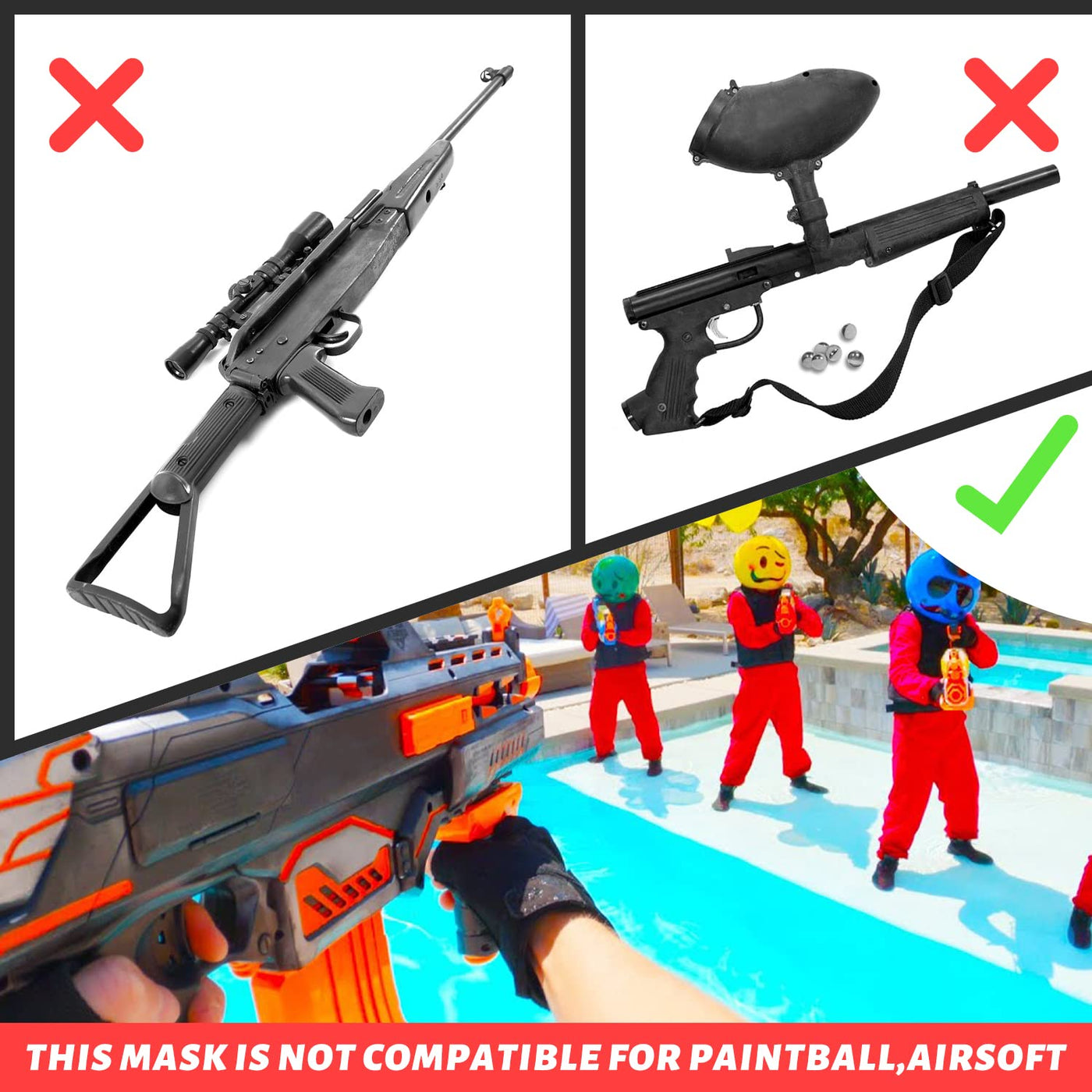 FEATURE Good quality PVC lens, anti-glare, anti-UV, impact resistant, broad vision, protect your eyes and face. durability and impact resistant TPU frame and removable mask. High density foam cushion in the forehead which effectively eases the face pressure. The mask is comfortable and totally fit to the face. Elastic band with adjustable buckle makes it fit for most of the sizes. Easy to breathe thanks to the ventilation system, no fog in the glasses. It keeps you cool while doing sports. Ideal for outdoor reality CS, Costume ball, Halloween, movie props etc.