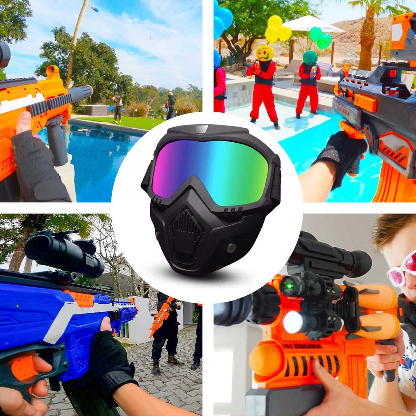 Borola Tactical Mask, Retro Motorcycle Goggles With Removable Face Mask, Safety Goggles Mask Uv400 Protection Compatible For Nerf Elite Toy Gun Game Rival