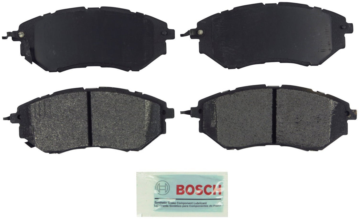 Bosch Blue Disc Brake Pads were created for the everyday driver, and benefit from the same robust testing and engineering processes as our premium braking line. Bosch Blue offers advanced, platform specific friction formulations (NAO-Ceramic and Semi-Metallic) for optimal performance. Blue delivers superior noise dampening capabilities with OE-style multi-layer shims. Rust inhibitive coating prevents the formation of rust and corrosion which can lead to pad degradation and noisy braking. OE design slots and chamfers deliver superior braking performance and efficient, quiet stops. Precision manufactured to strict tolerances for guaranteed fit, and simple, hassle-free installation. Supplied with synthetic lubricant for reduced resistance on sliding contact points. Set includes brake pads for 1 axle (2 wheels). NOTE: Pads come wrapped in a protective blue shop towel within the box. Hardware not included.