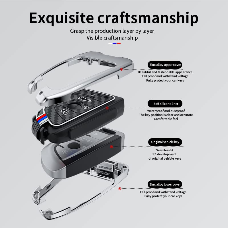 Bradegeve Carbon Fiber Key Fob Cover Case Metal Shell Cover Compatible for BMW 5 6 7 Series X1 X2 X3 X5 X6 X7 (Gunmetal