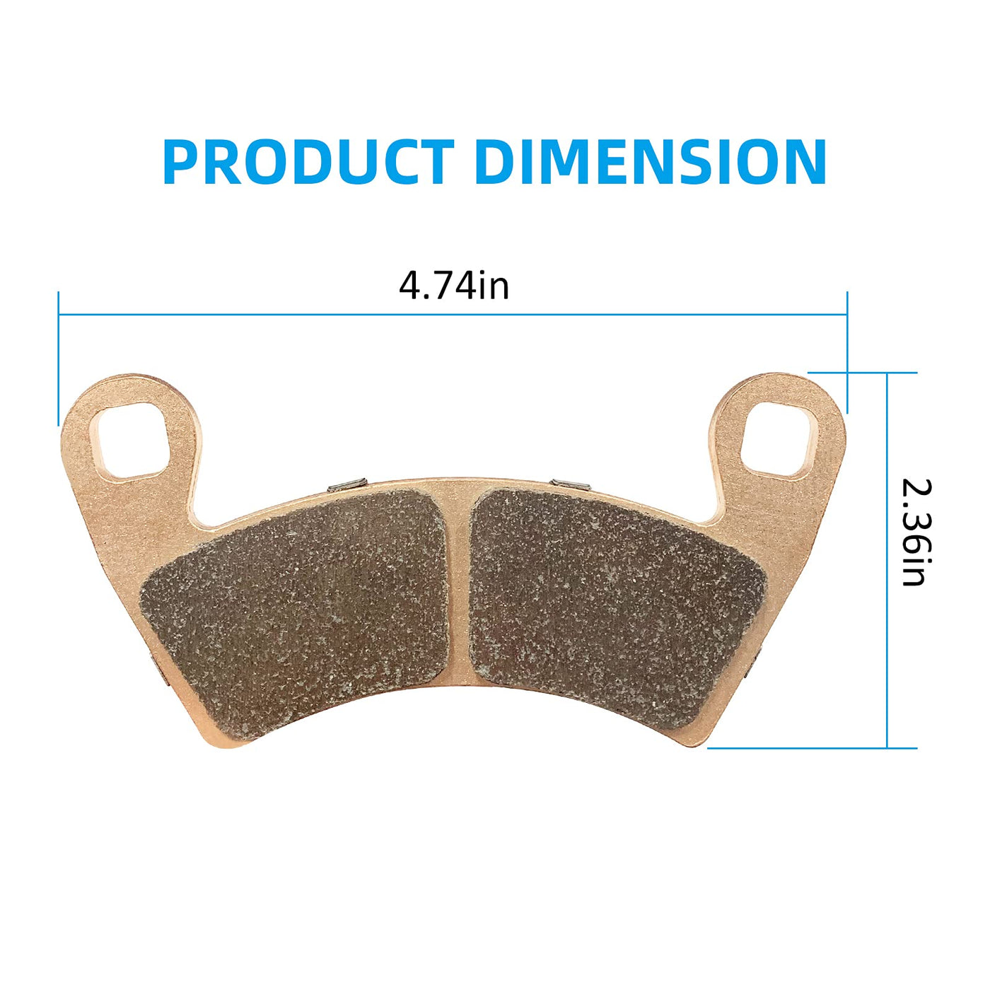 Q: What materials are these brake pads made of?A: The brake pads are constructed from a sintered copper and tin formula compound, providing excellent durability and performance in various conditions such as mud, water, sand, and racing environments. They also feature black anti-noise shims on the back side to effectively reduce noise during operation.