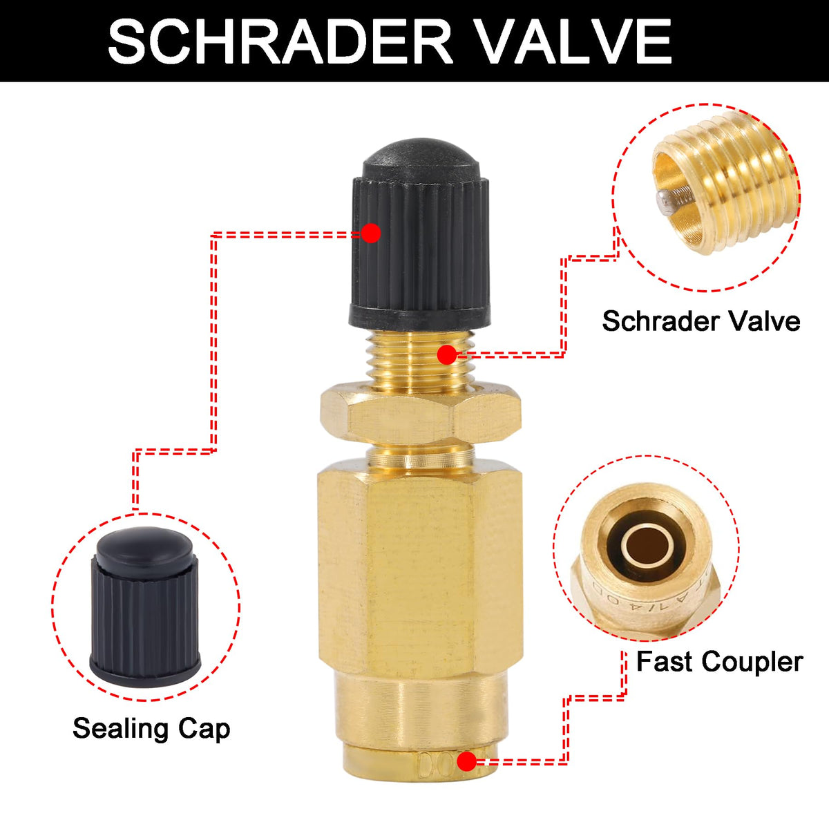 Breezliy 1/4'' Inflation Schrader Valve with Push to Connect for 1/4'' OD Air Line Tubing and Air Spring Suspension for Semi Tru