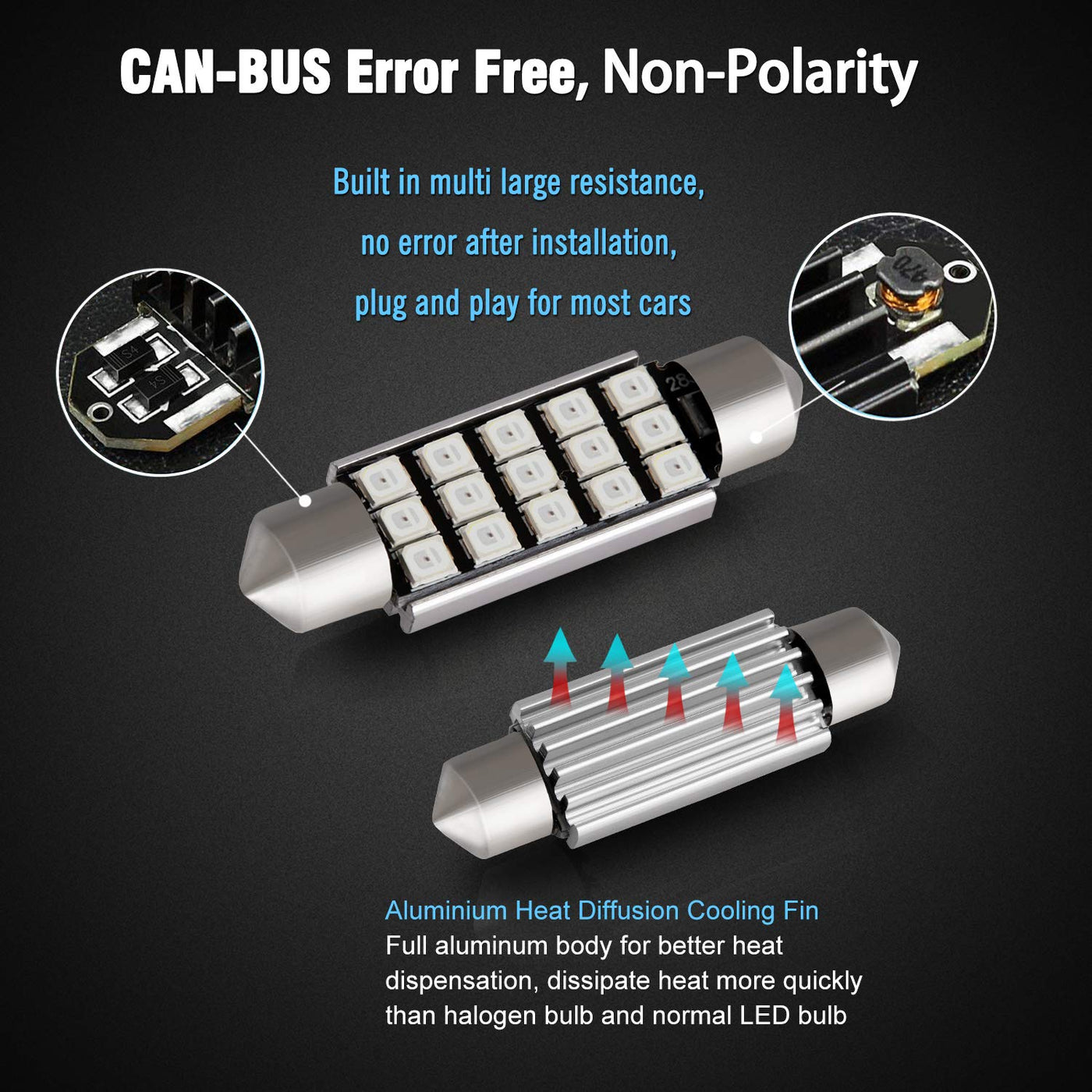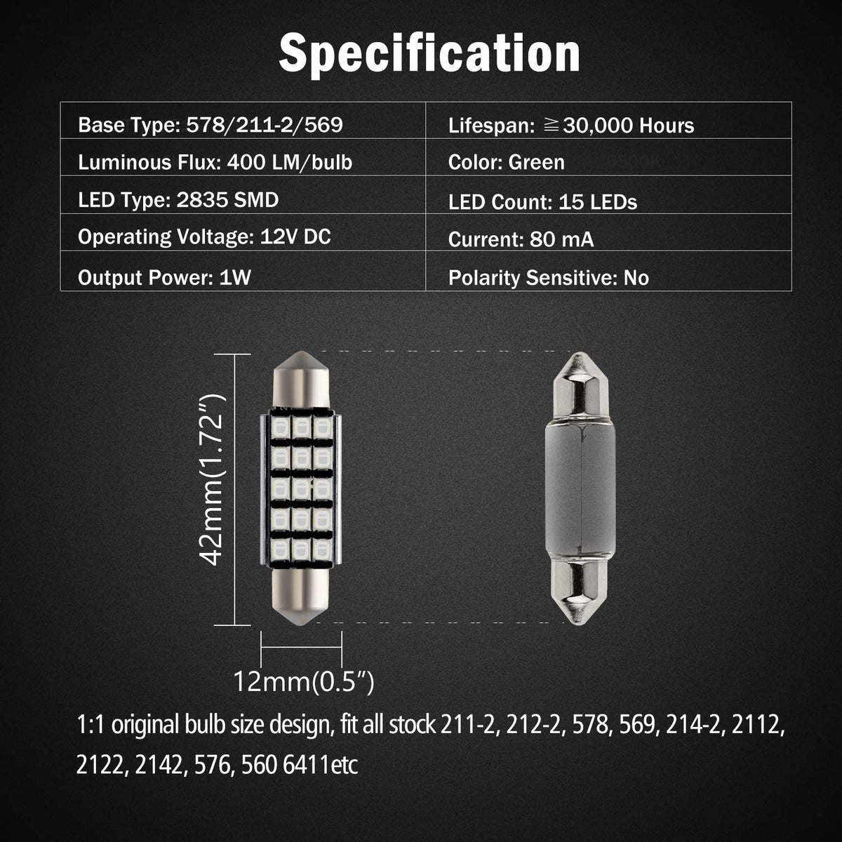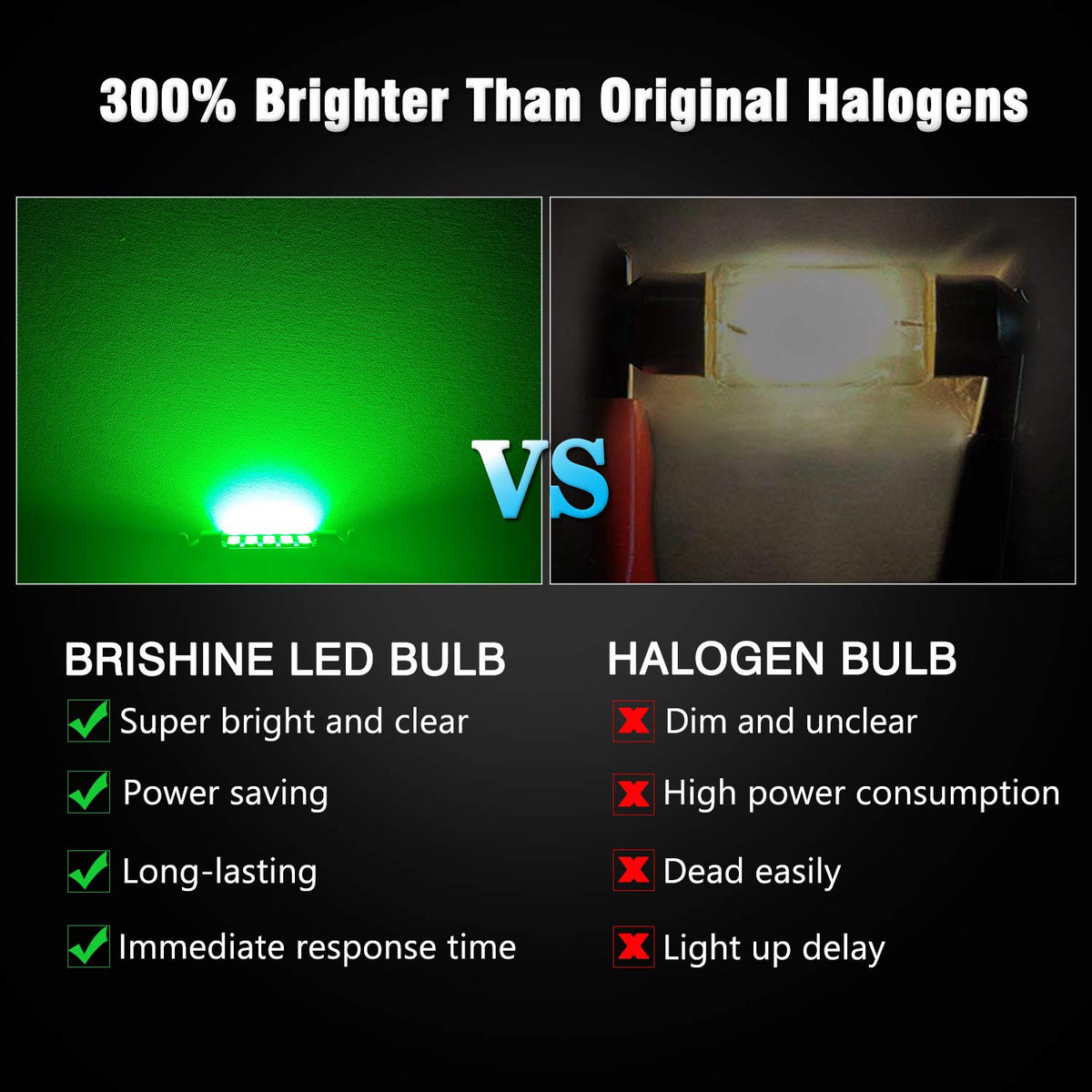 Brishine 578 211-2 Led Bulbs, Super Bright Green 2835 Chipsets Canbus Error Free 41Mm 42Mm 1.72 Festoon 212-2 569 Led Bulbs F
