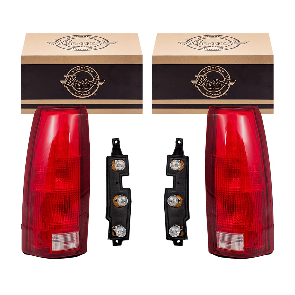Q: What vehicles are compatible with the Brock Replacement Set Tail Lights?A: The Brock Replacement Set Tail Lights are compatible with various models including C/K Pickup Trucks from 1988 to 2000, Suburban from 1992 to 1999, Tahoe from 1992 to 1999, Yukon from 1992 to 1999, and Blazer (Full Size ONLY) from 1992 to 1994. Please refer to the Confirmed Fit tool for specific compatibility.