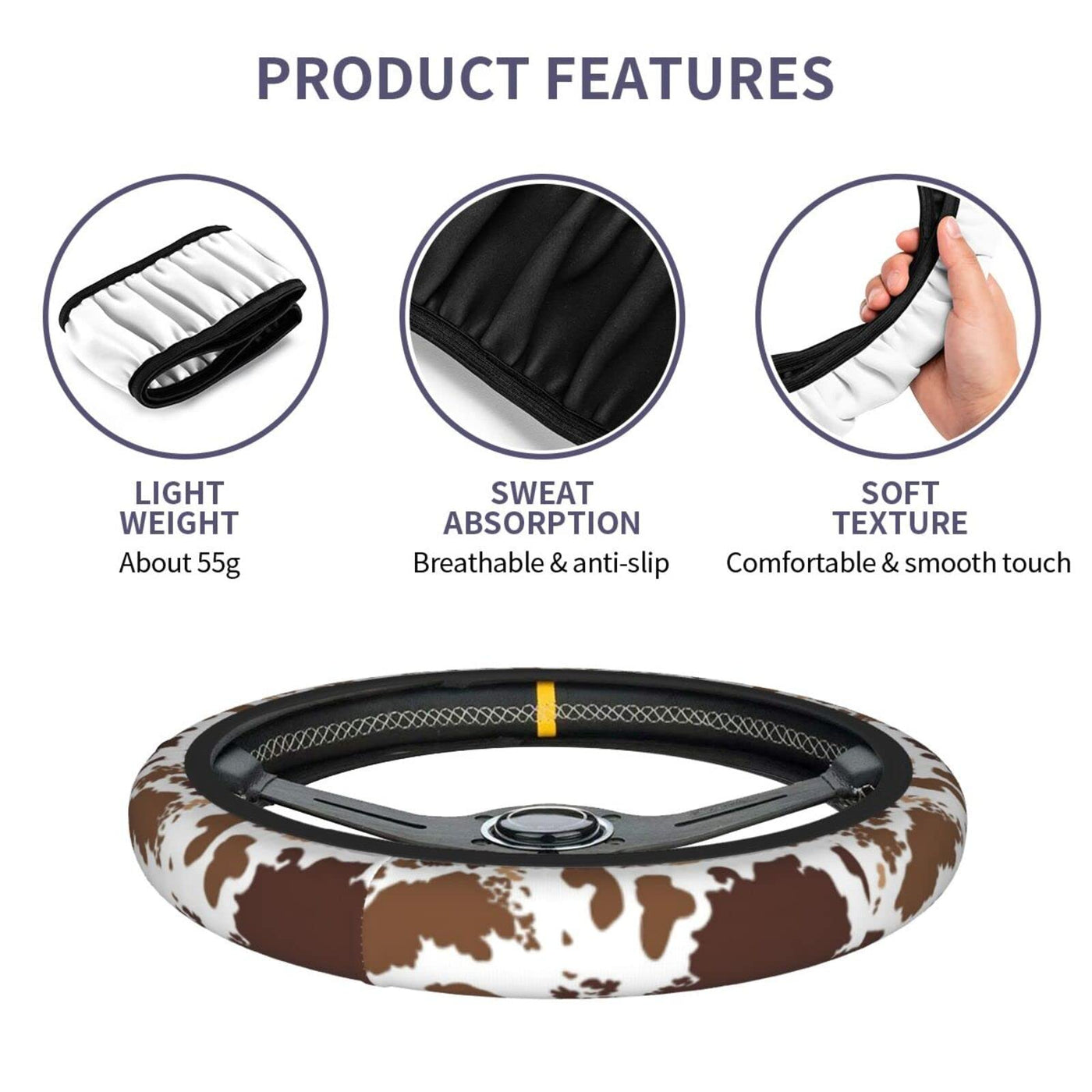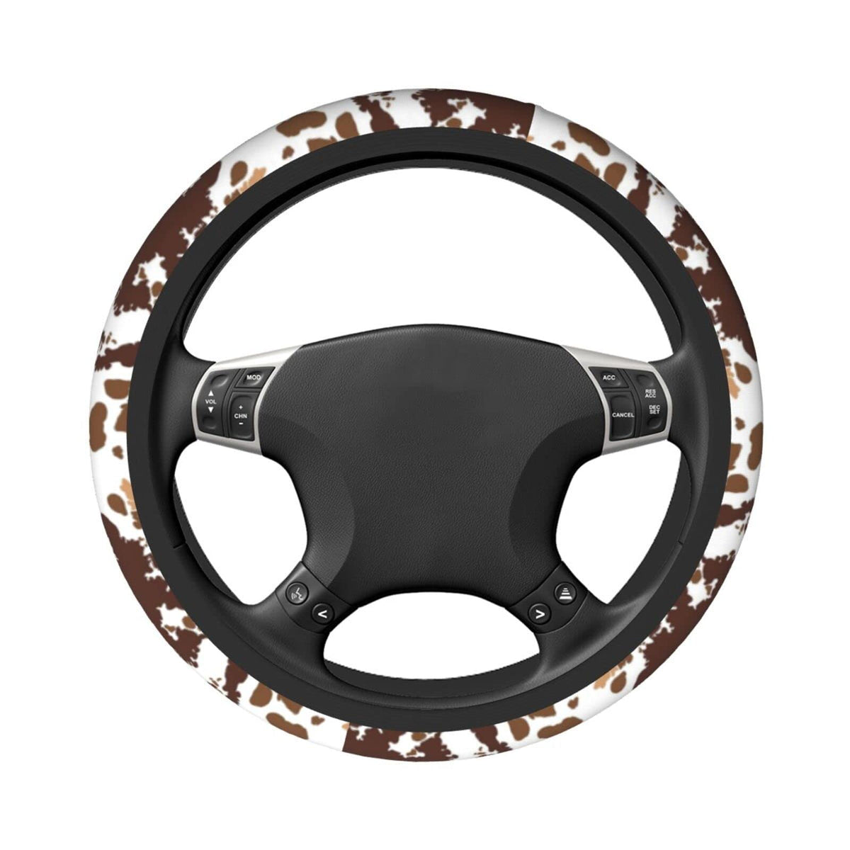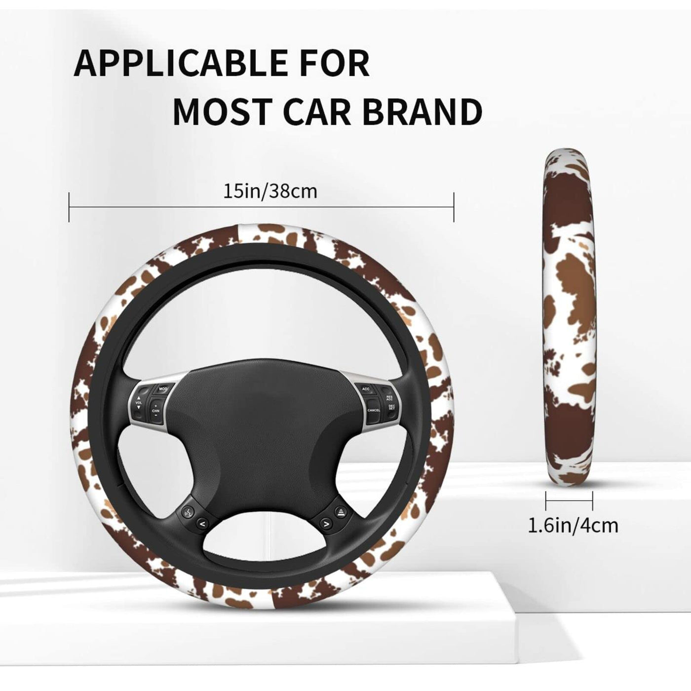 Brown Cow Print Steering Wheel Cover Universal 15 Inches For Women Men, Neoprene Anti-Slip Cute Car Steering Wheel Grip Wrap Car