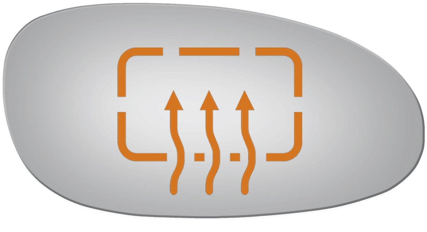 These mirrors are heated when your defrost function is turned on. They may or may not have a heated icon. The presence of heat wires is a good indication that your mirror is heated. Burco mirrors with part suffix H come complete with a pre-applied heat grid.