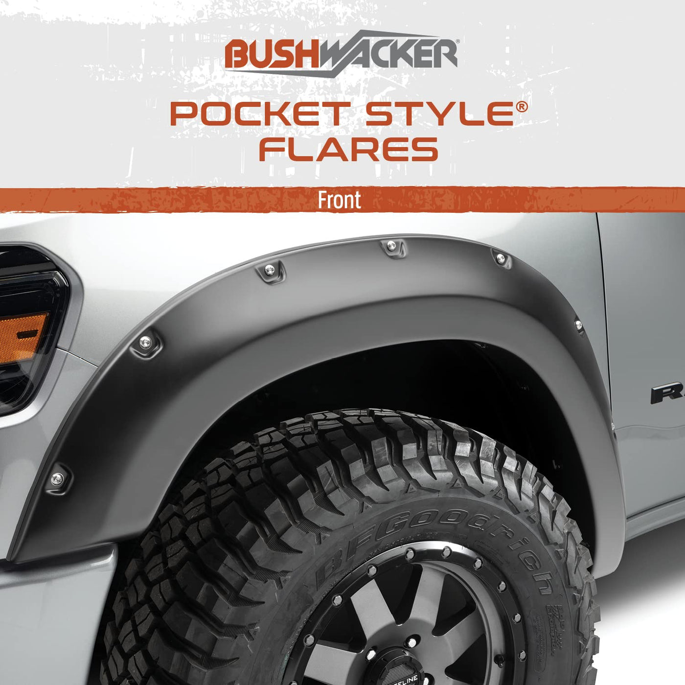 Bushwacker Pocket Style® Fender Flares are a Bushwacker original and an off-road icon with their recessed stainless steel bolts and massive presence. These flares are custom designed to complement oversized tires while providing premium tire protection. When you need maximum tire coverage with minimum time and effort, it's in the pocket. Pocket Style Fender Flares from Bushwacker.