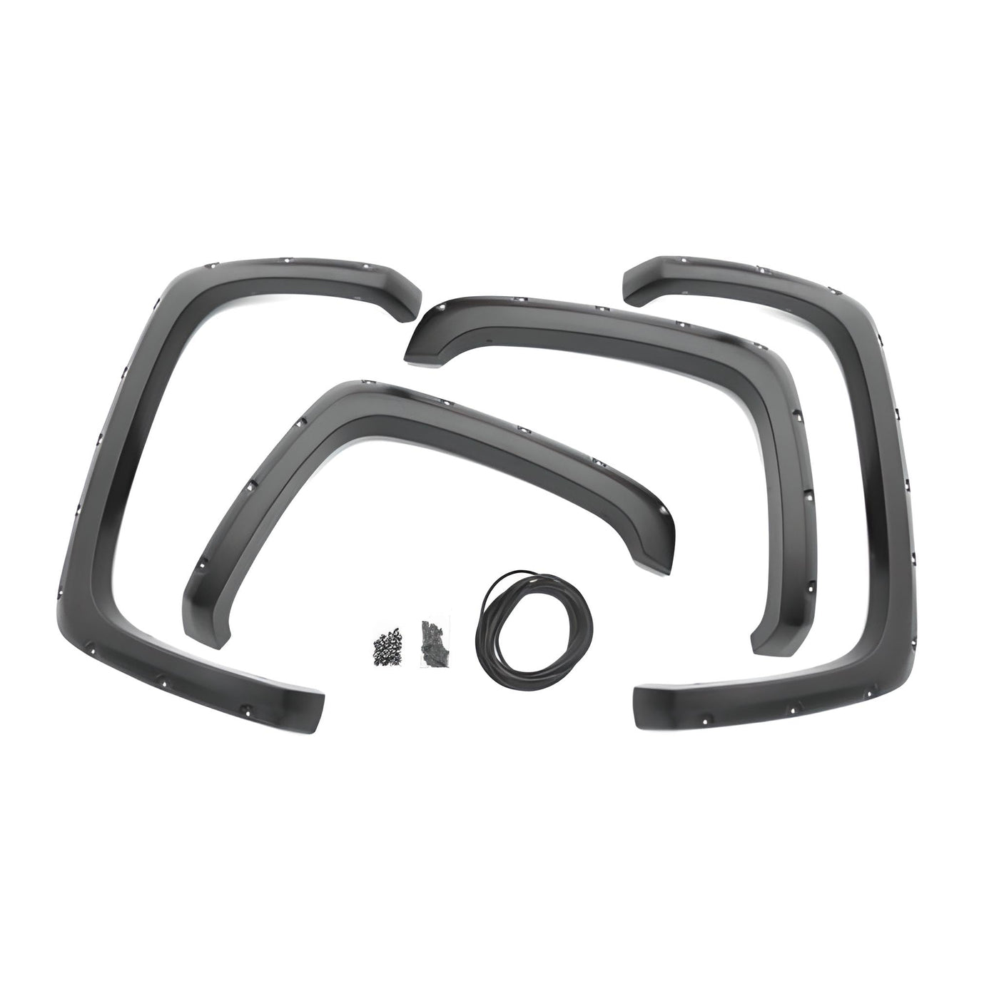 Want A New Take On A Bushwacker Original? Check Out The New Bushwacker Forge Fender Flares With A Rugged Texture And All Black Hardware. New To The Bushwacker Line Up These Flares Offer The Popular Rivet Style With A Rugged Textured Finish Unlike The Smooth Paintable Surface On Our Iconic Pocket Style Flares. The New Forge Flare Comes With Black Rivet Hardware To Highlight The Look Of A Bolted-On Flare. These Flares Complement Oversized Tires While Providing Tire Protection. Made With Our Durable Abs Material It Provides A Dense, Hard And Scratch-Resistant Surface, Flexible Enough To Bend Without Breaking.