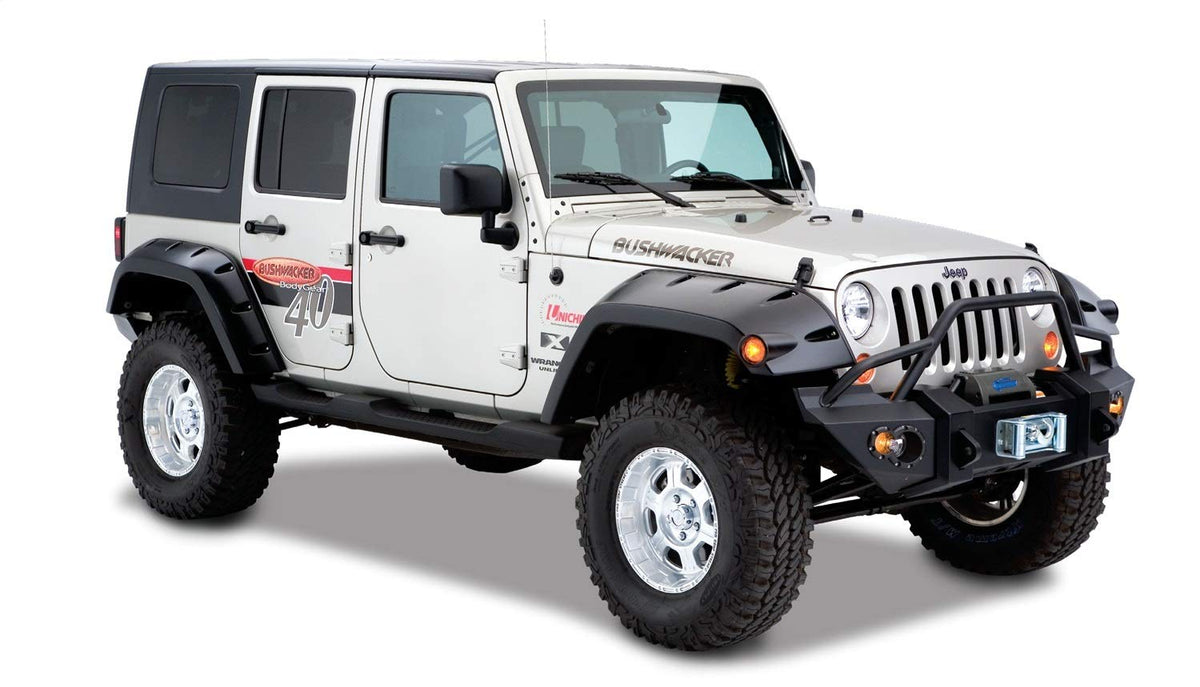 Q: Can the Bushwacker Fender Flares be painted?A: Yes, the OEM-style matte black finish of the Bushwacker Fender Flares can be painted to match or accent your vehicle's body color, allowing for a custom look that complements your Jeep.