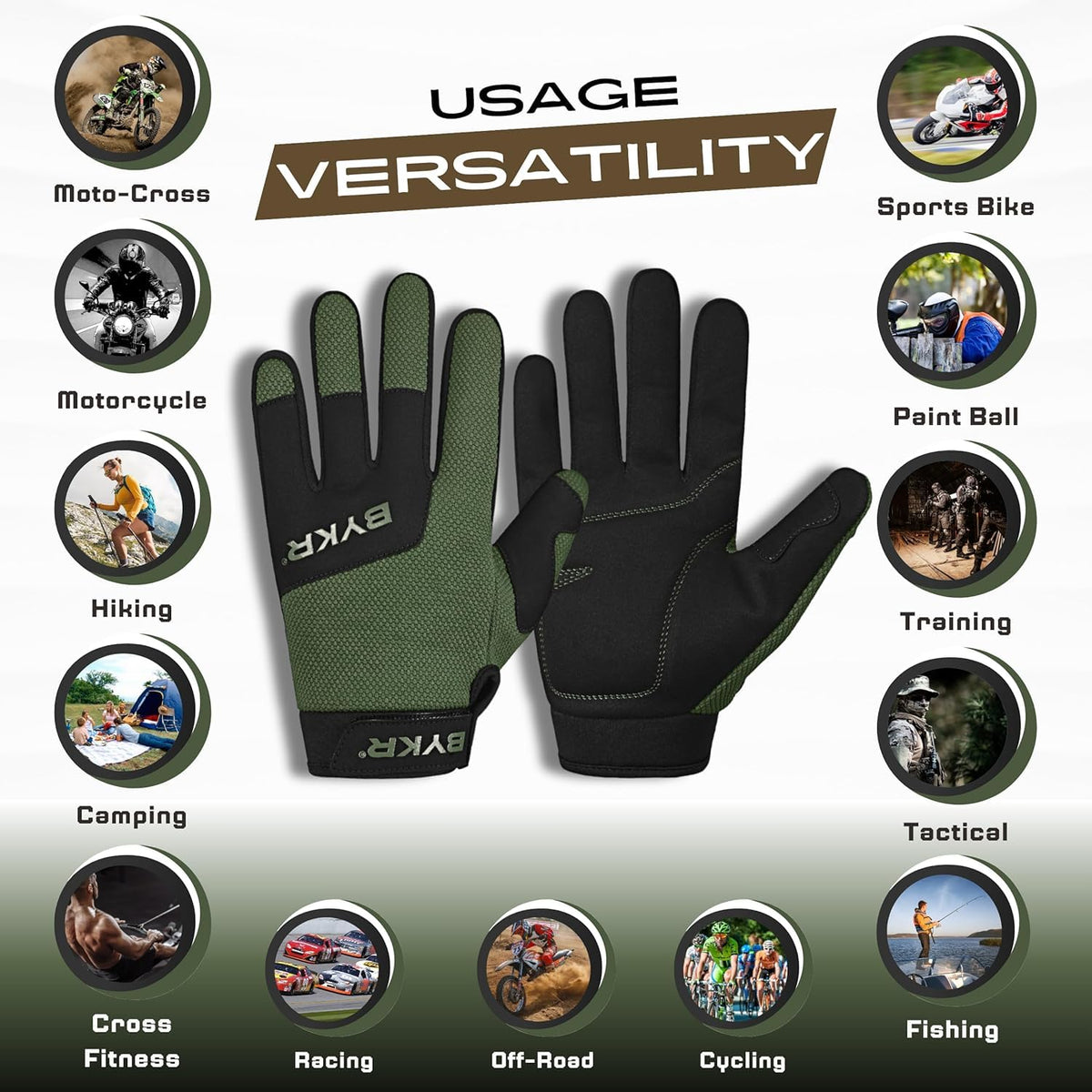 Bykr All-Weather Motorcycle Gloves For Men & Women - Protection For Dirt Bike, Bmx, Mx, And Atv Riding - Mil Green S