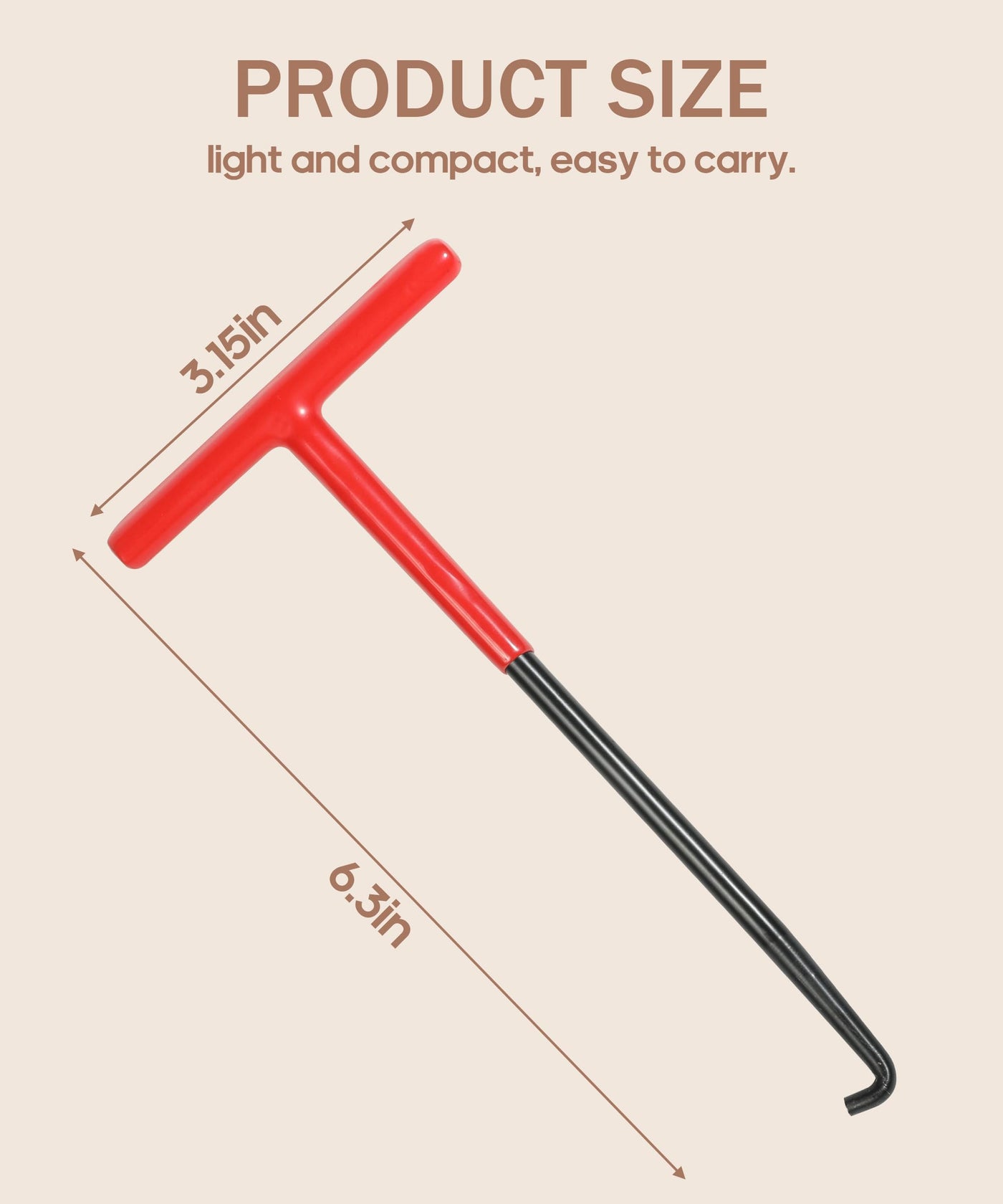 Q: How does the T-shaped design of the exhaust spring puller enhance usability?A: The T-shaped pattern design of the exhaust spring puller increases support and provides better control during use. This ergonomic design, along with the rubber coating, helps relieve hand pressure, making it comfortable to operate.