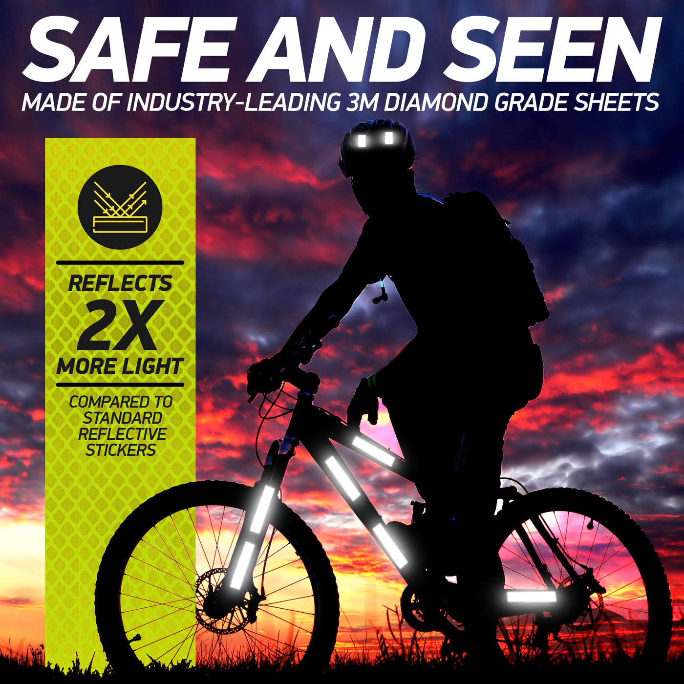 Q: How do I apply the reflective stickers correctly?A: For best results, ensure the surface is clean and dry before application. The stickers adhere best to flat, smooth surfaces, but can be cut into smaller sections for curved surfaces like helmets.