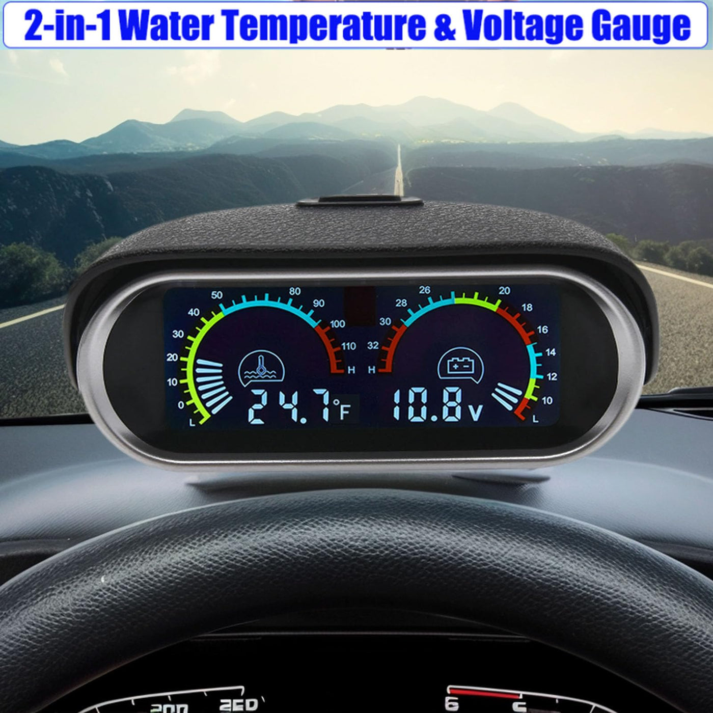 BYYOUIV 2-in-1 Water Temperature & Voltage Gauge Kit for Car, Boat, Truck, Motorcycle