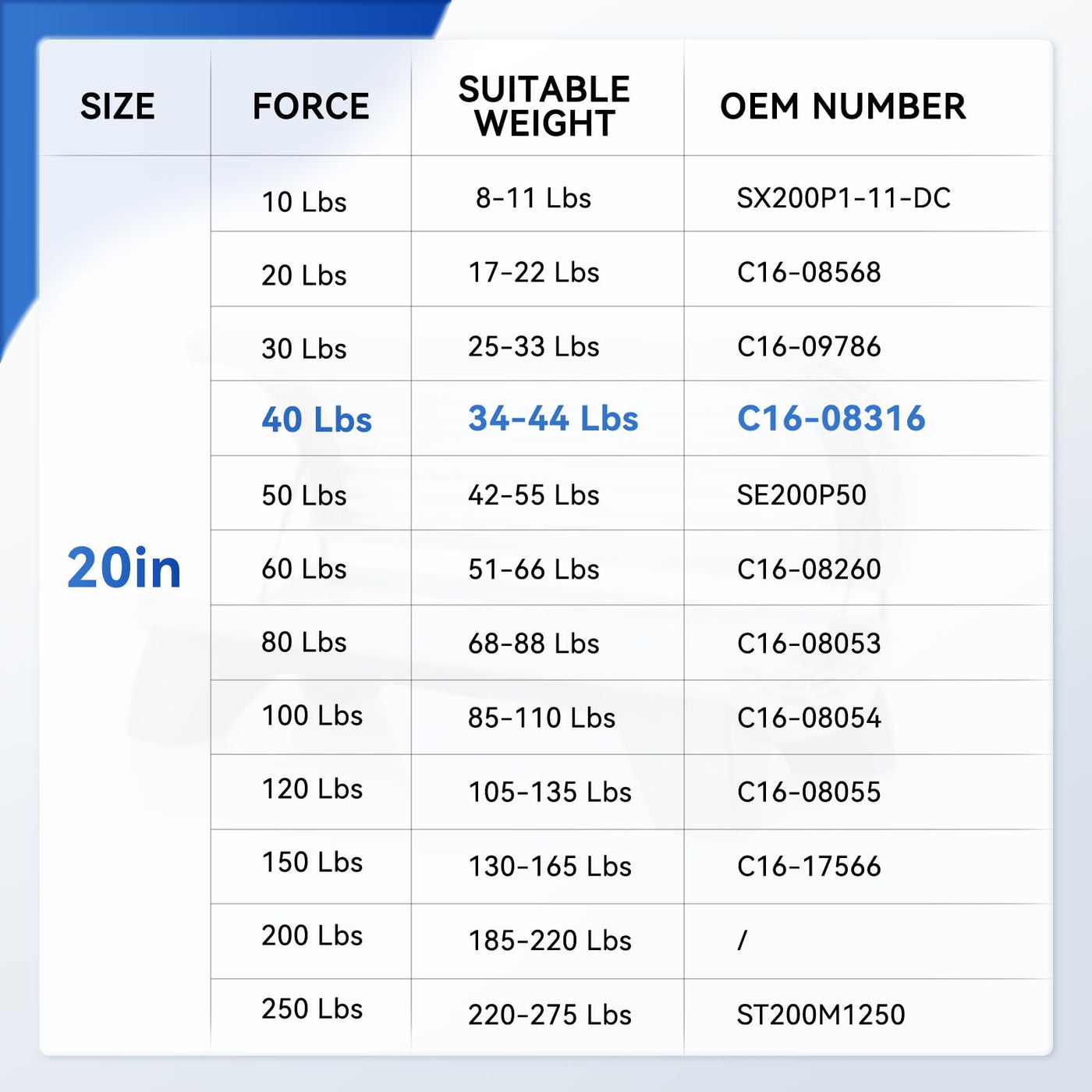 C16-08316 C1608316 20'' 40 Lbs Gas Struts Prop Shock 20 inch for RV Side Door Motorhome Door Camper Shell Rear Window Tonneau Co
