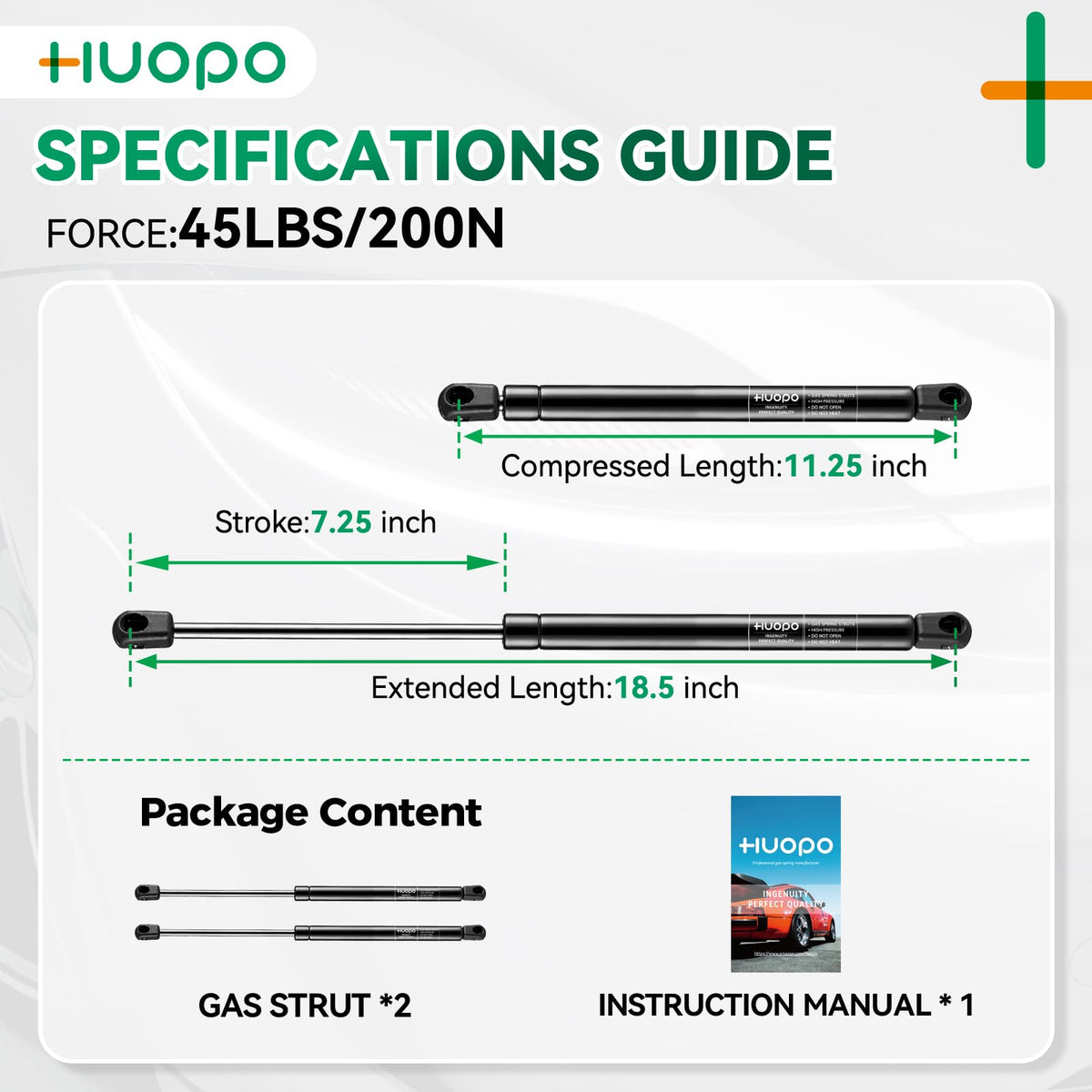 C16-21706 19 Inch 18.5 Inch 45Lb/200N Gas Struts Shock Spring Lift Support For Atc Leer Snugtop Camper Shell Truck Cap Rear Topp