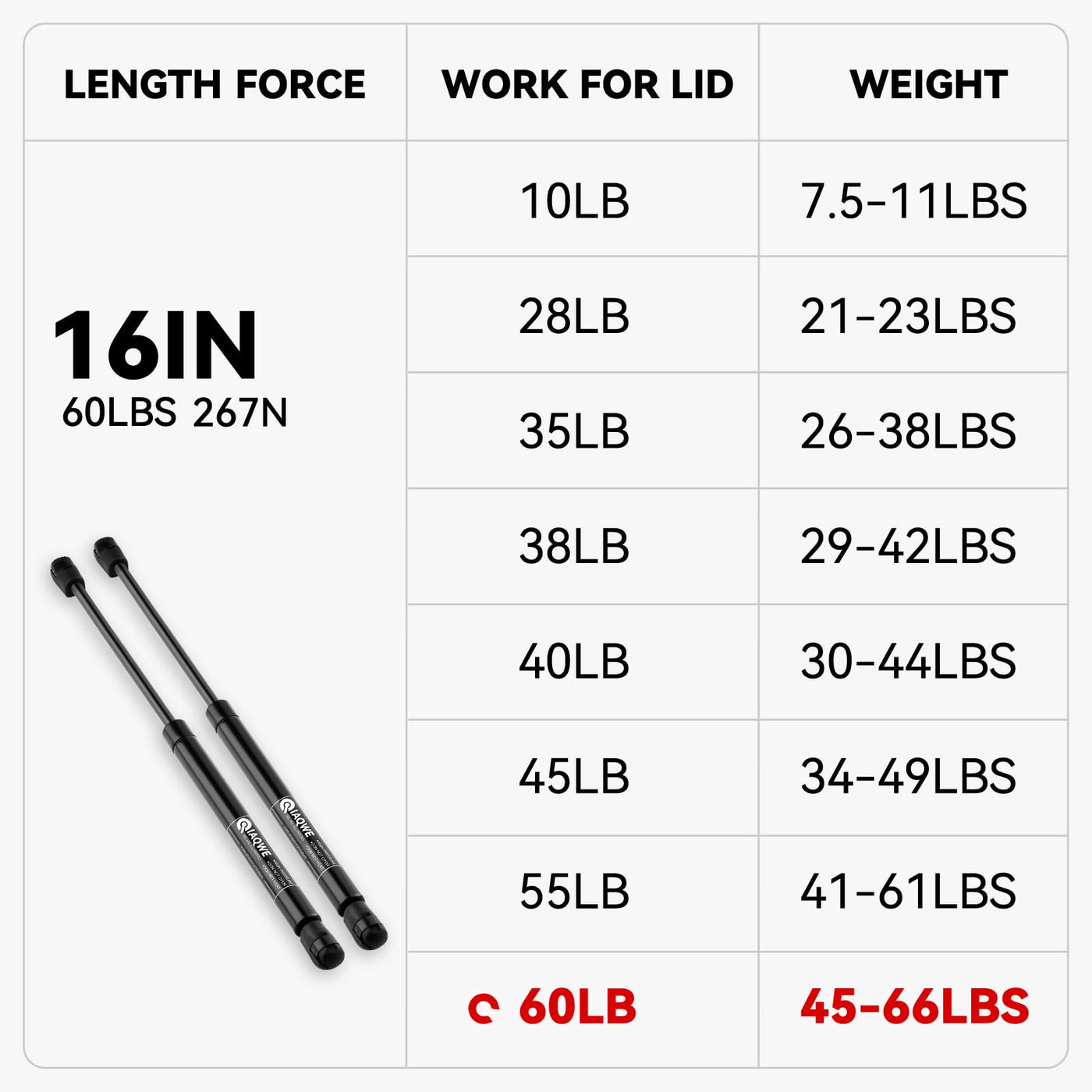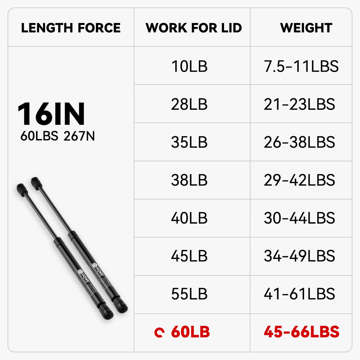 C16-21949 16 Inch 60Lbs/270N Gas Struts Spring Lift Support Shocks For Are Snugtop Camper Shell C1621311 Topper Rear Window Cano